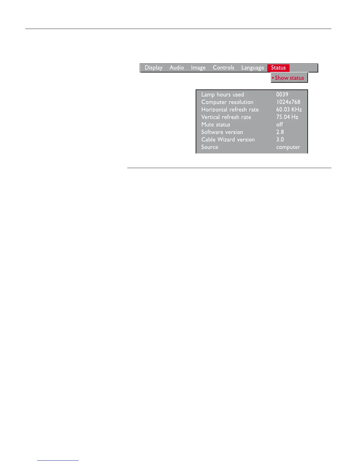 Indicates the projector’s software version. This information is
