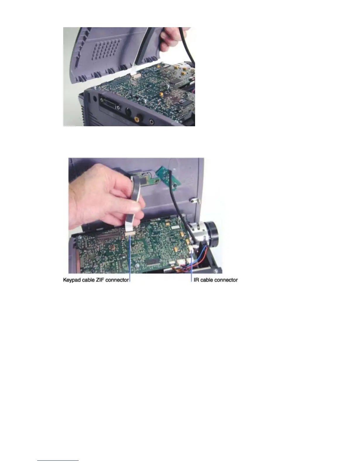6 Place the top case next to the projector, and then disconnect the keypad cable from the ZIF