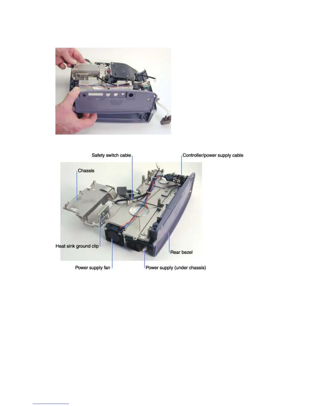 7 Place the chassis and power supply aside and go to the part you want to remove. The following