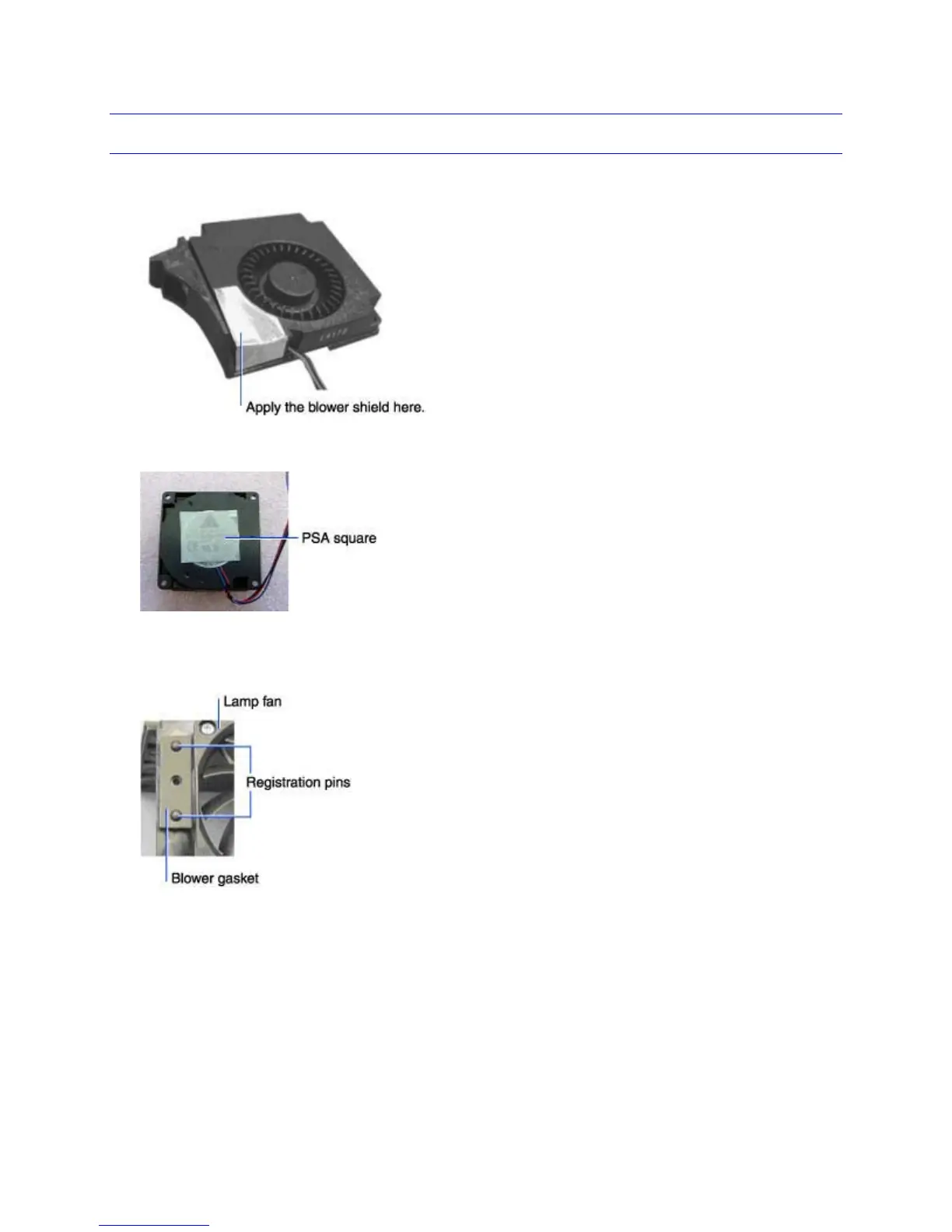 ♦ Adhere a heat shield to the portion of the fan housing that is inserted into the lamp housing.