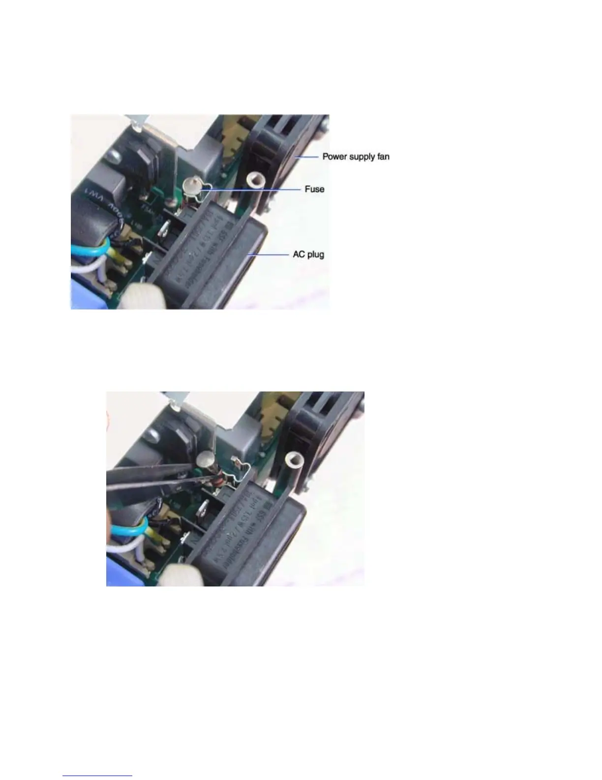 The power supply fuse (749-0026-xx) mounts on the power supply just behind the AC connector on the