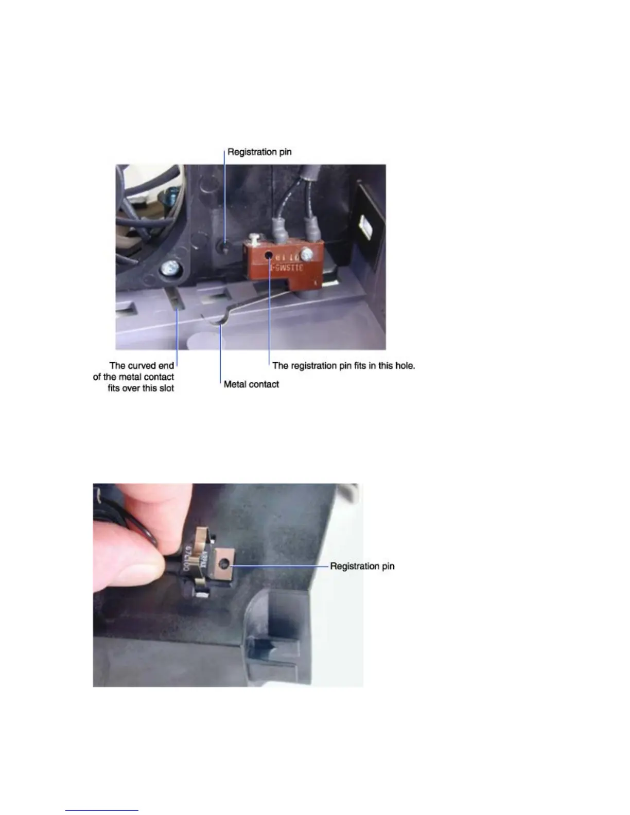 ♦ To install the interlock switch, orient it so that the registration pin in the lamp housing fits into the