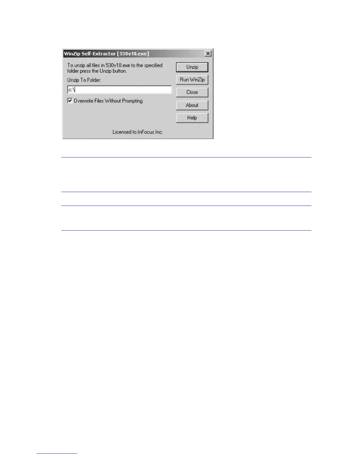 4 The WinZip Self-Extractor dialog box appears.