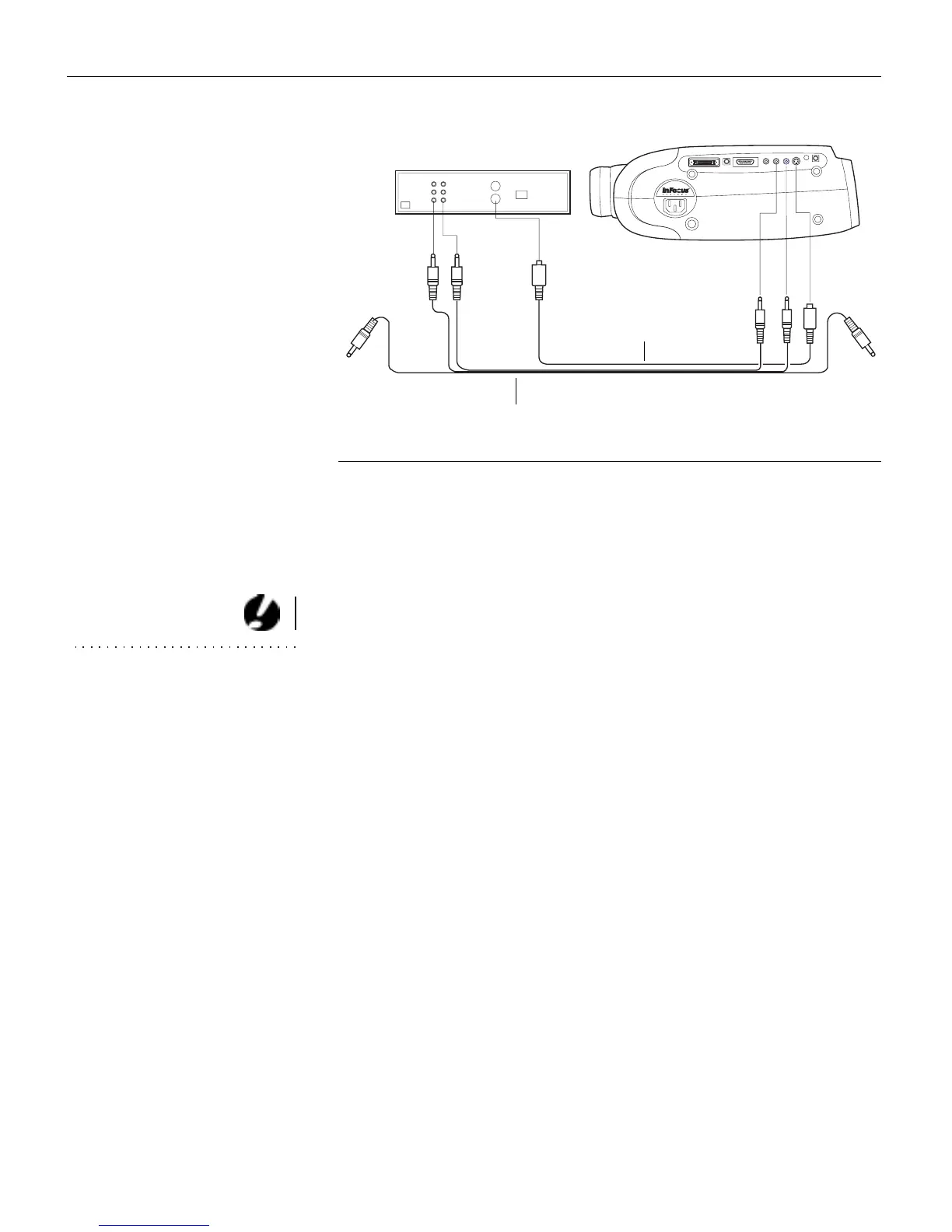 Connecting the projector to a video player using an S-video cable and the audio con-