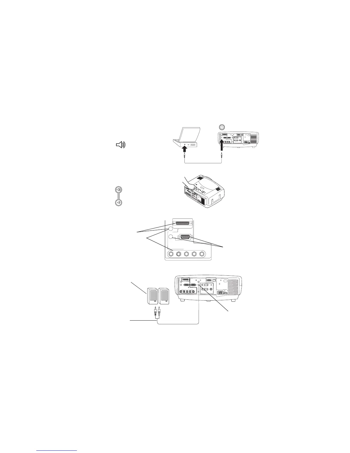 Projektoren kan tilkobles eksterne høyttalere med egen forsterker ved å
