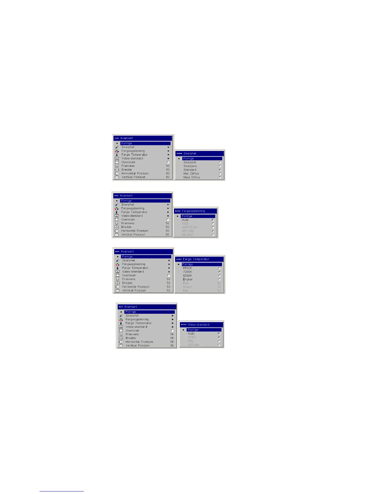 Video-standard: når dette er innstilt på Auto, prøver projektoren å velge