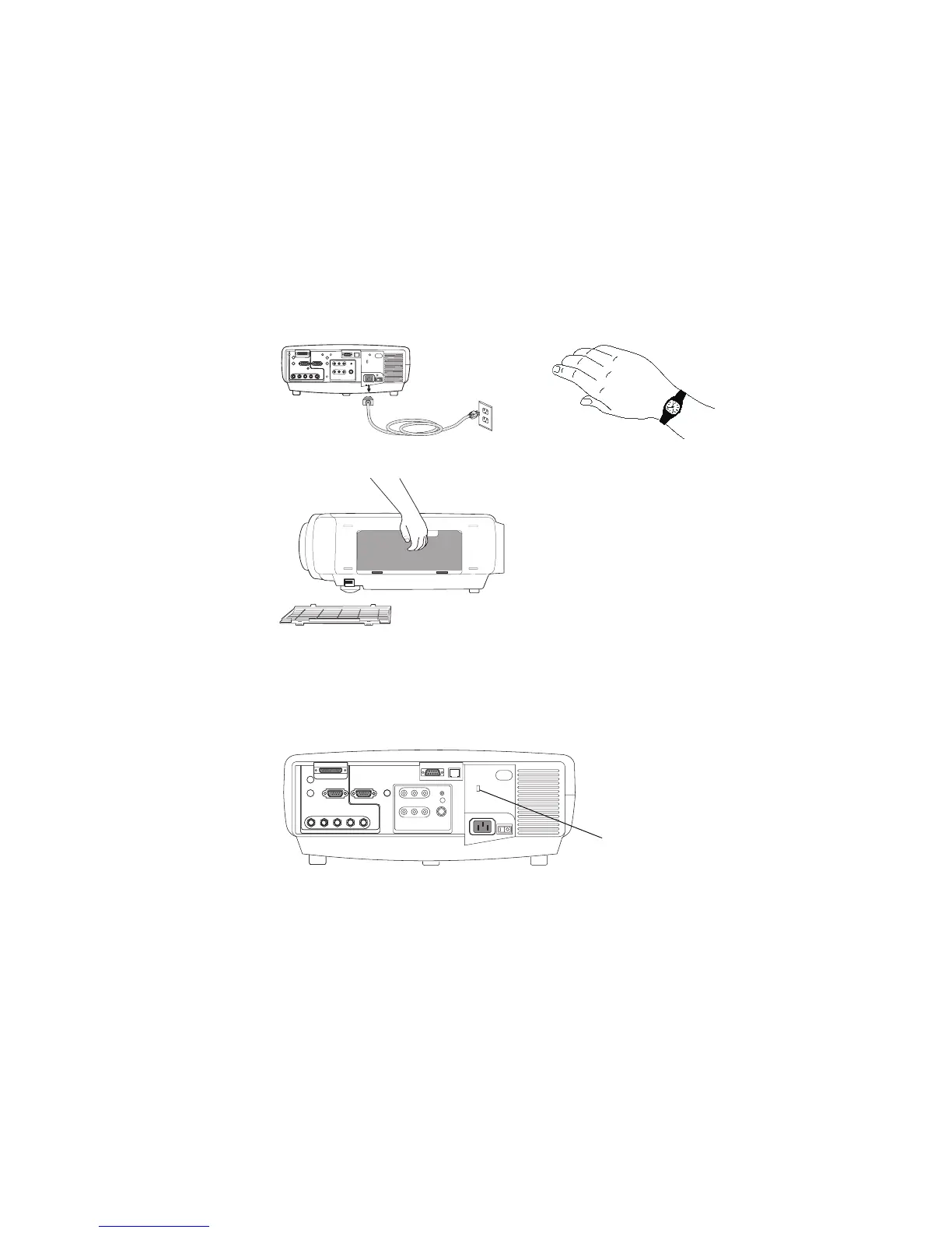 Projektoren er utstyrt med en sikkerhetslås som kan brukes med et