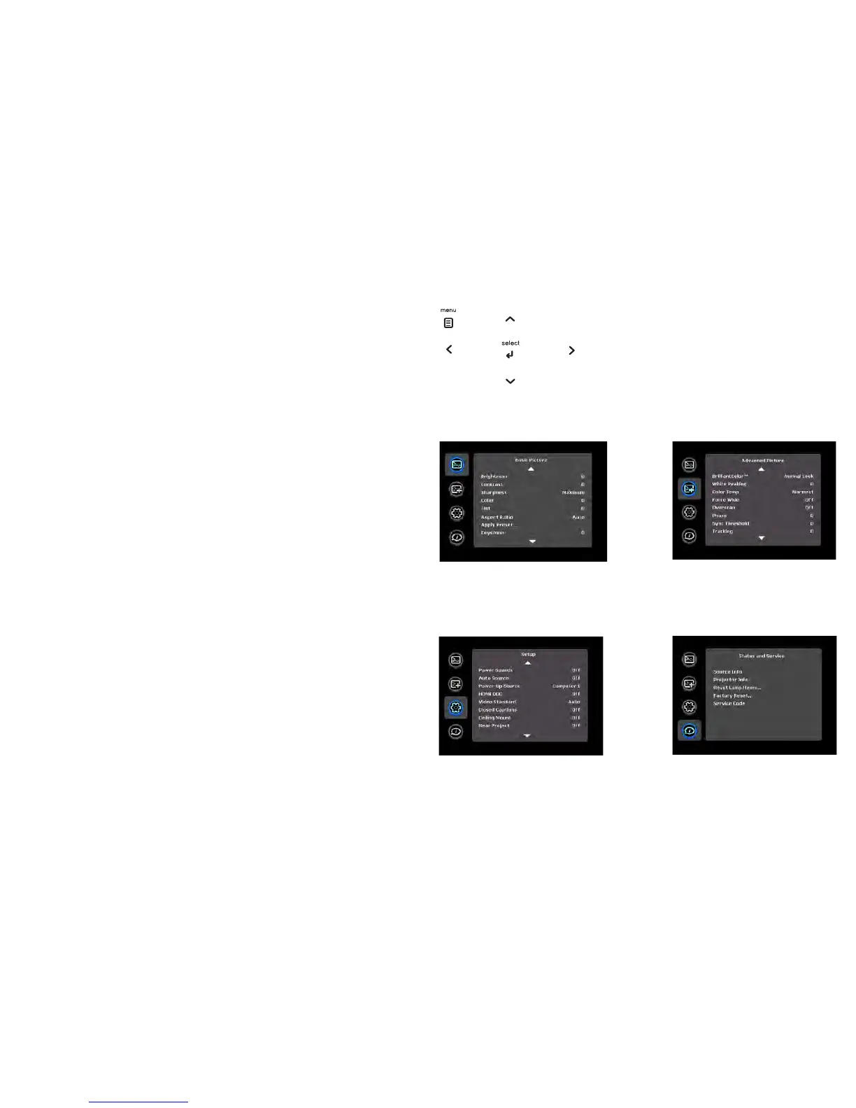 To open the menus, press the Menu button on the keypad or remote. (The menus