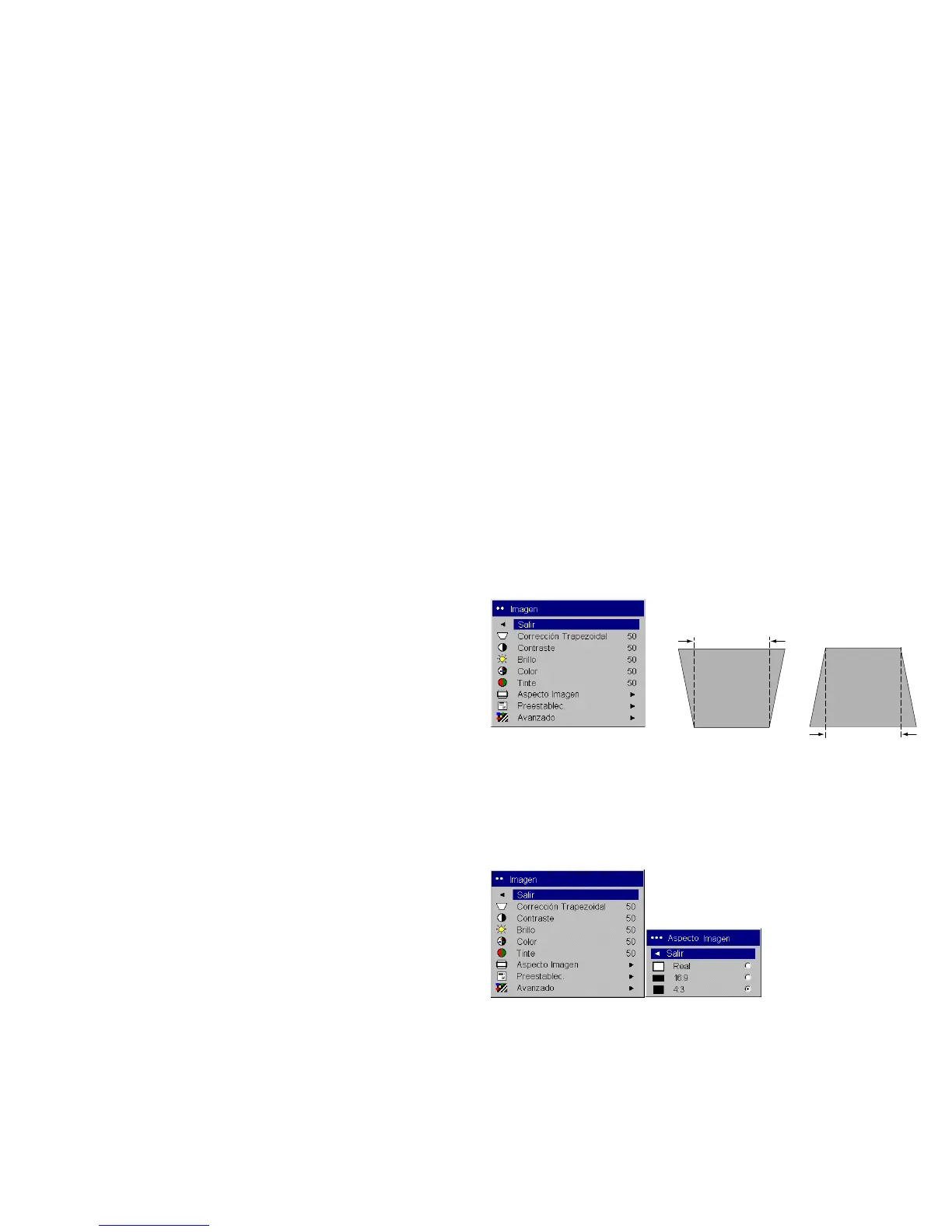 más cuadrada. También puede ajustar la corrección trapezoidal desde el teclado
