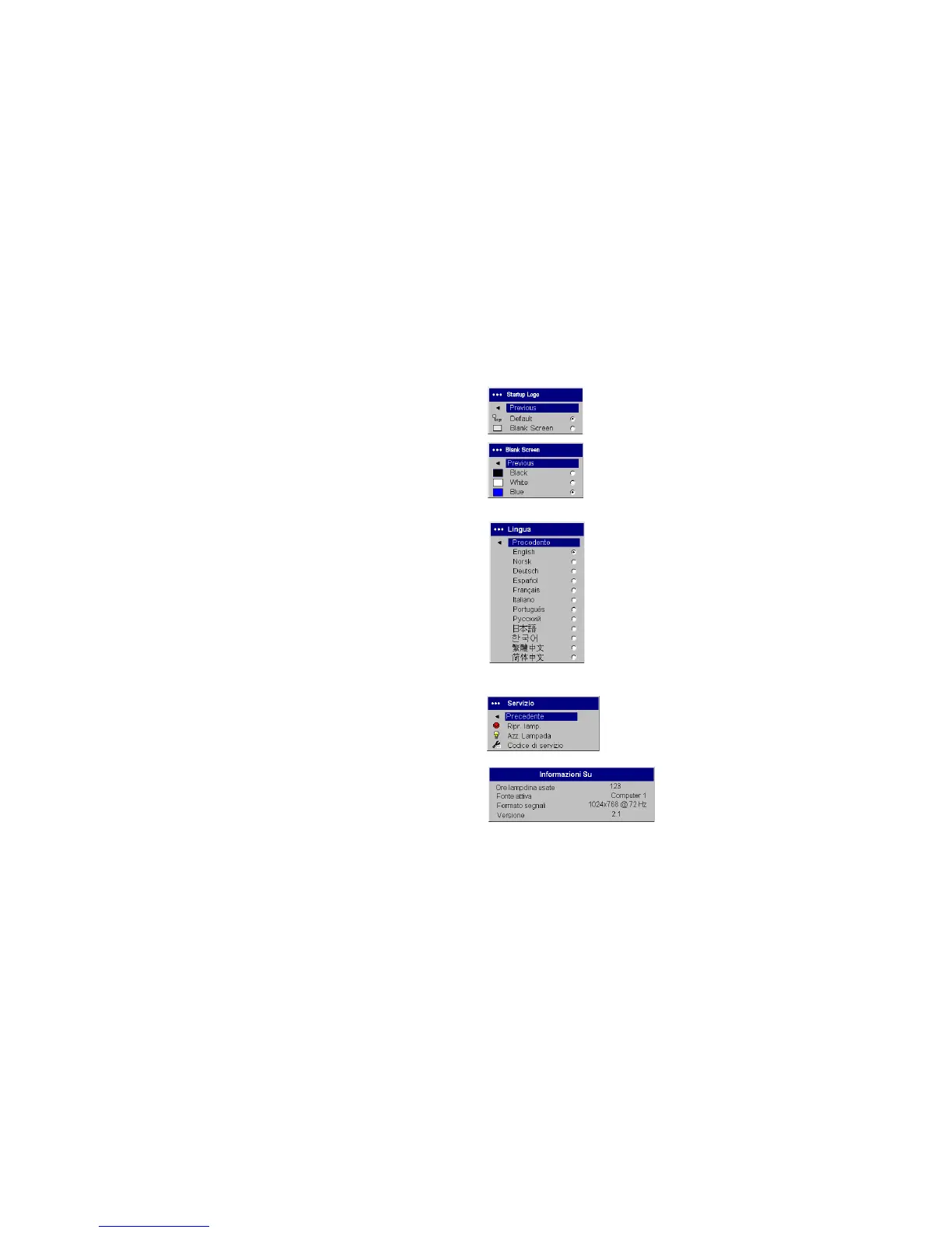 della schermata predefinita che si visualizza all’avvio o se il proiettore non