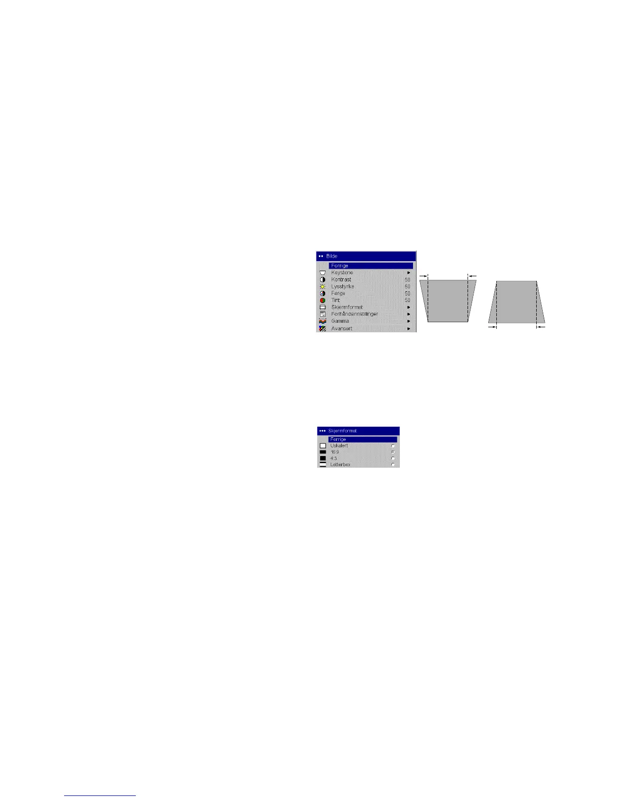 Keystone: justerer bildet vertikalt og lager et rettvinklet bilde. Du kan også