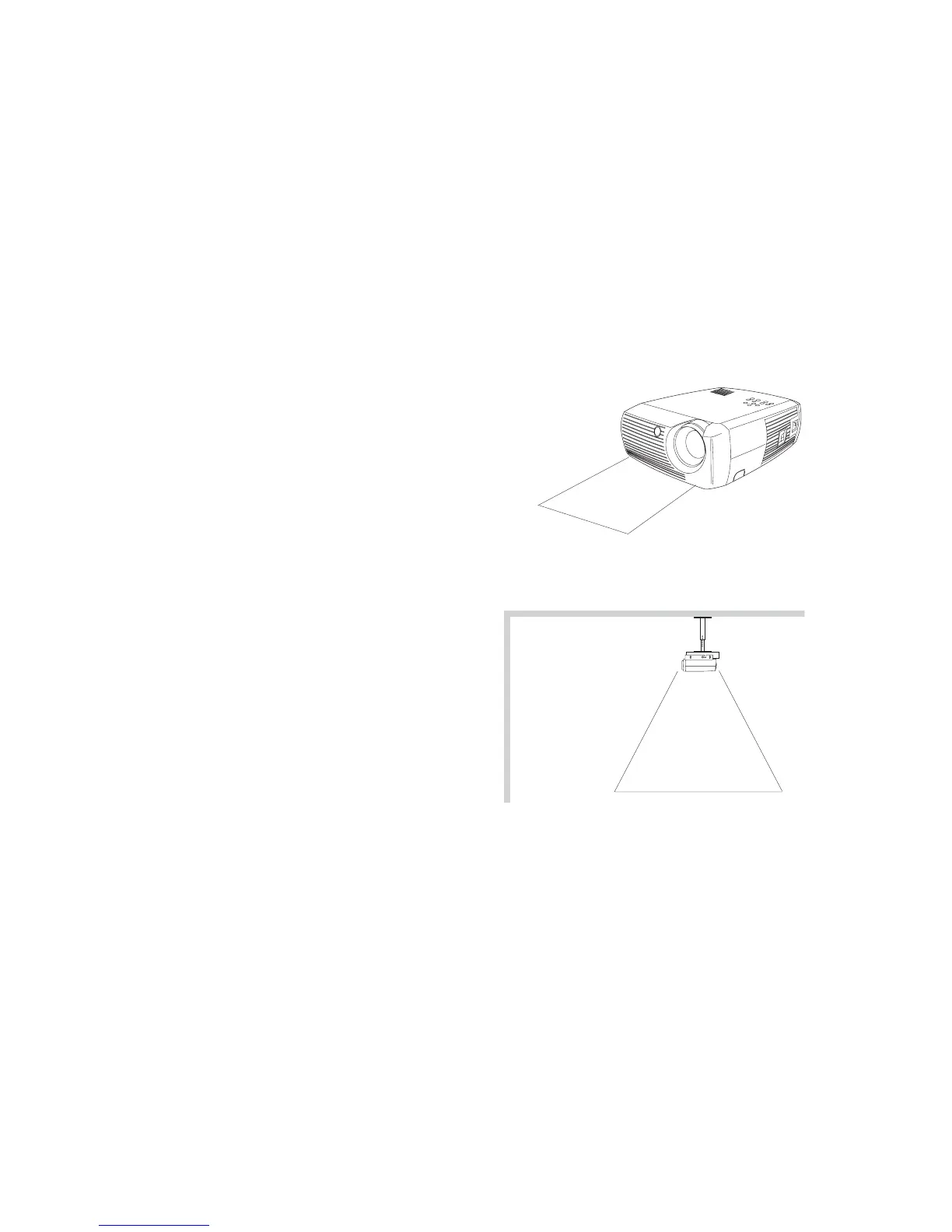 projektoren. Når det gjelder takmonterte anvendelser, skal dette området være