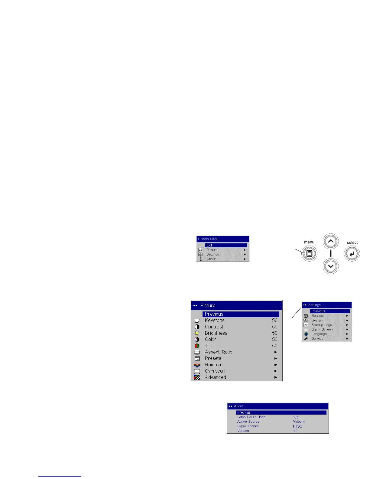 desired submenu, then press the Select button.