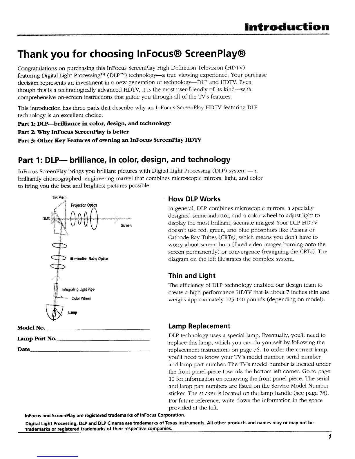 InFocus Screenplay - Introduction; DLP Technology Overview