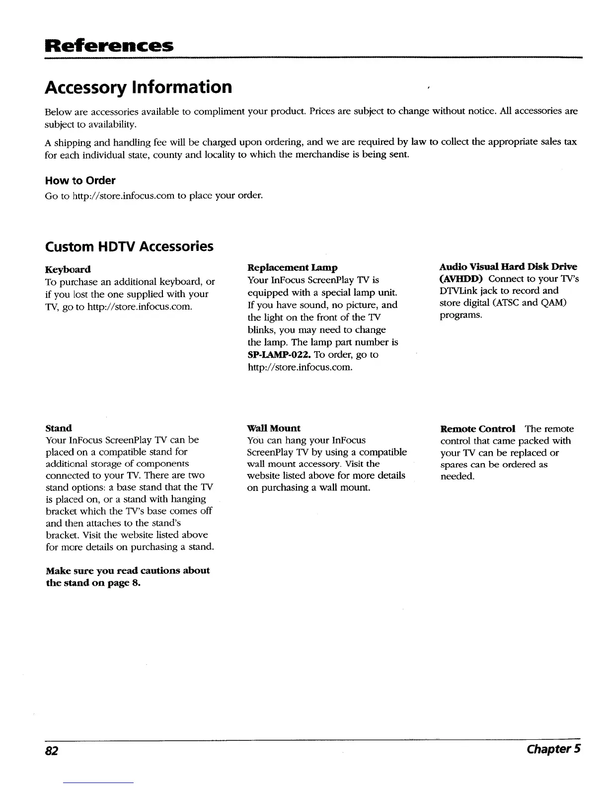 InFocus Screenplay - Available Accessory Information