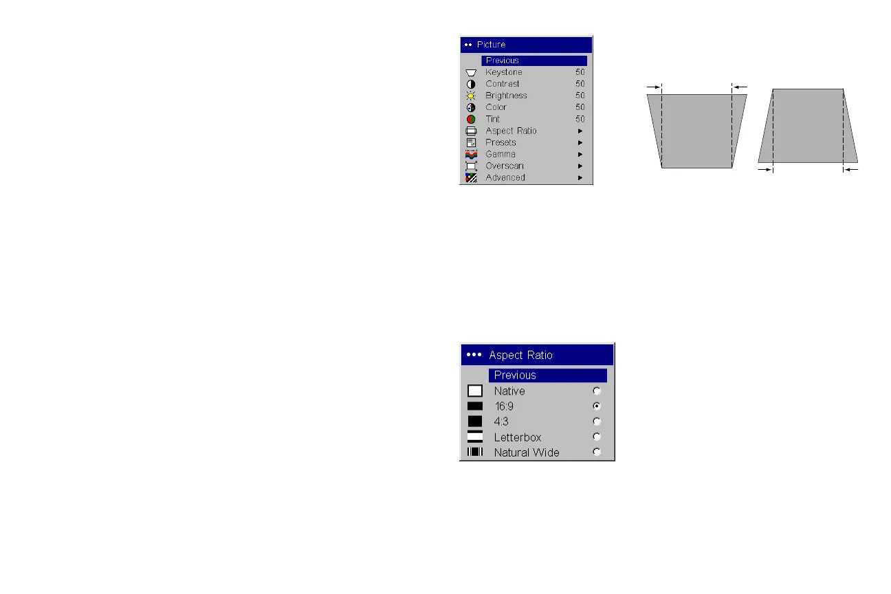 Keystone: adjusts the image vertically and makes a squarer image. You can