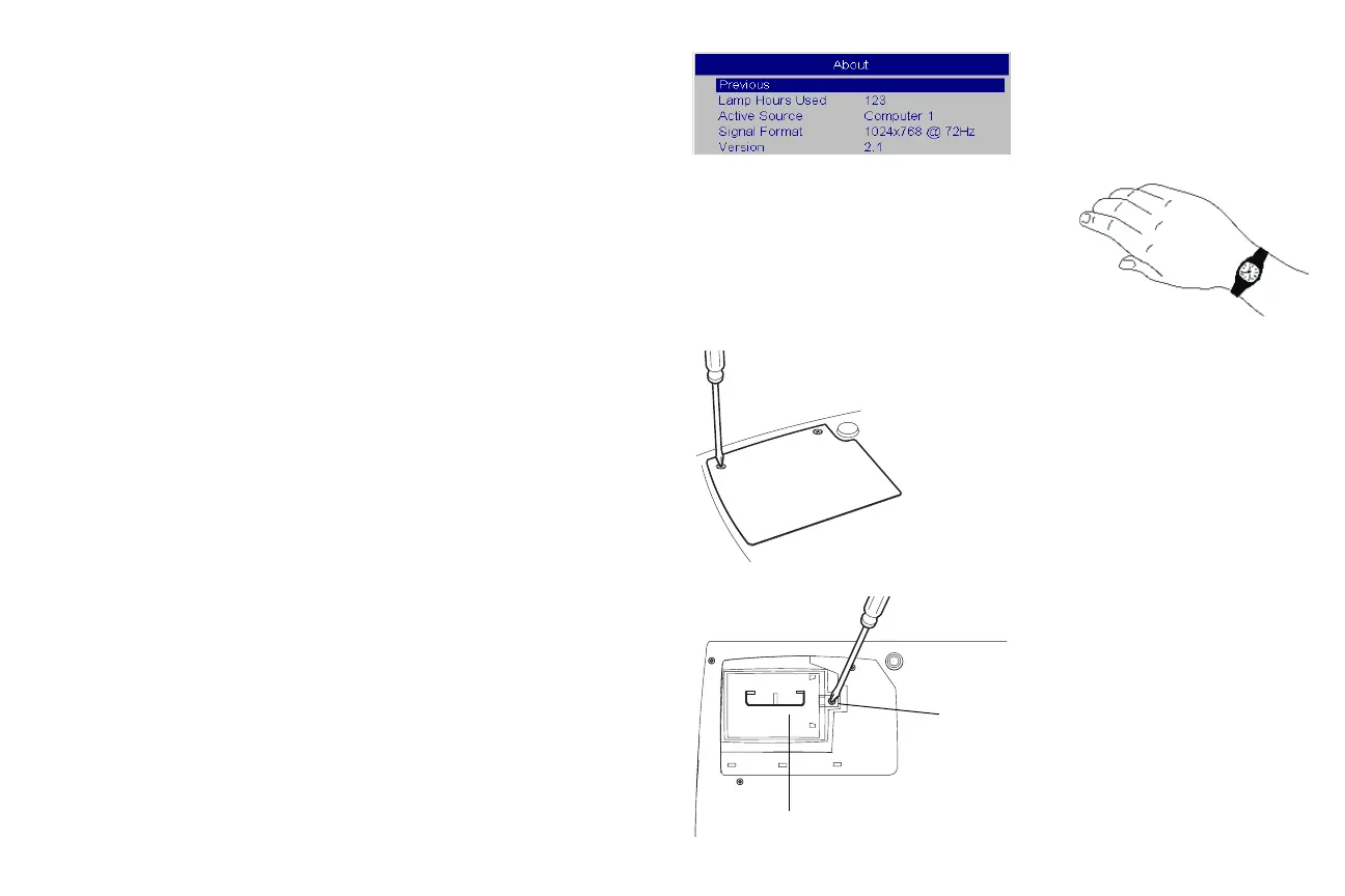 lamp has been in use. After 1980 hours, the message “Change lamp” briefly