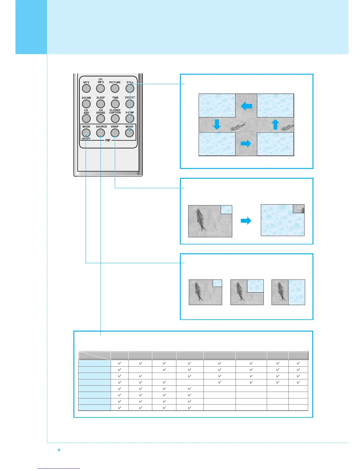 Source key : Change the source of the PIP window. The available sources are shown as below.