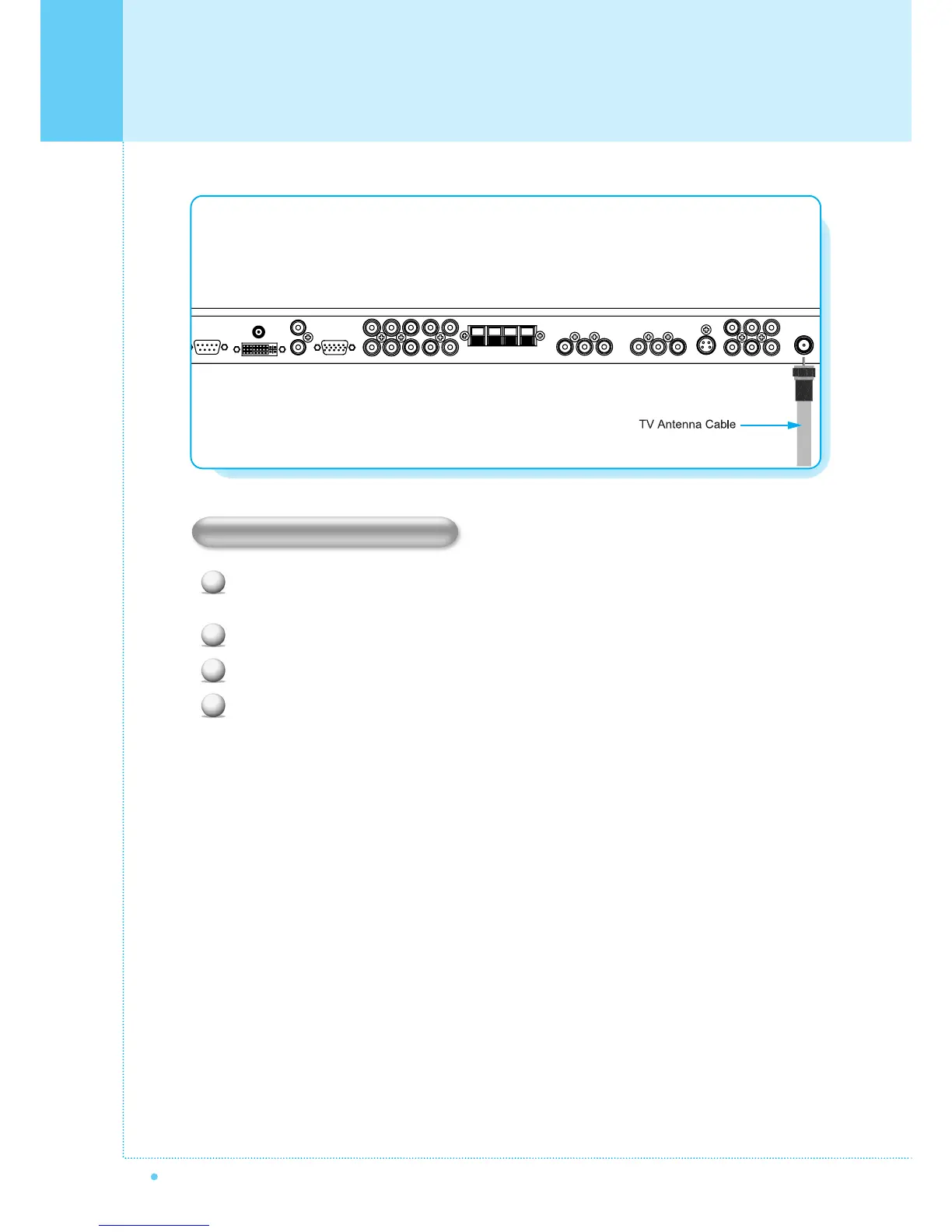 Connect the TV antenna cable to the TV input jack. Press INPUT button on the remote control and