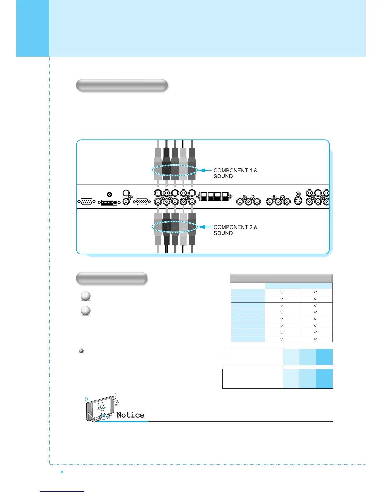 • Component, PC, DVI ports can be displayed only 1 signal among them. If one of them is being displayed, other ports