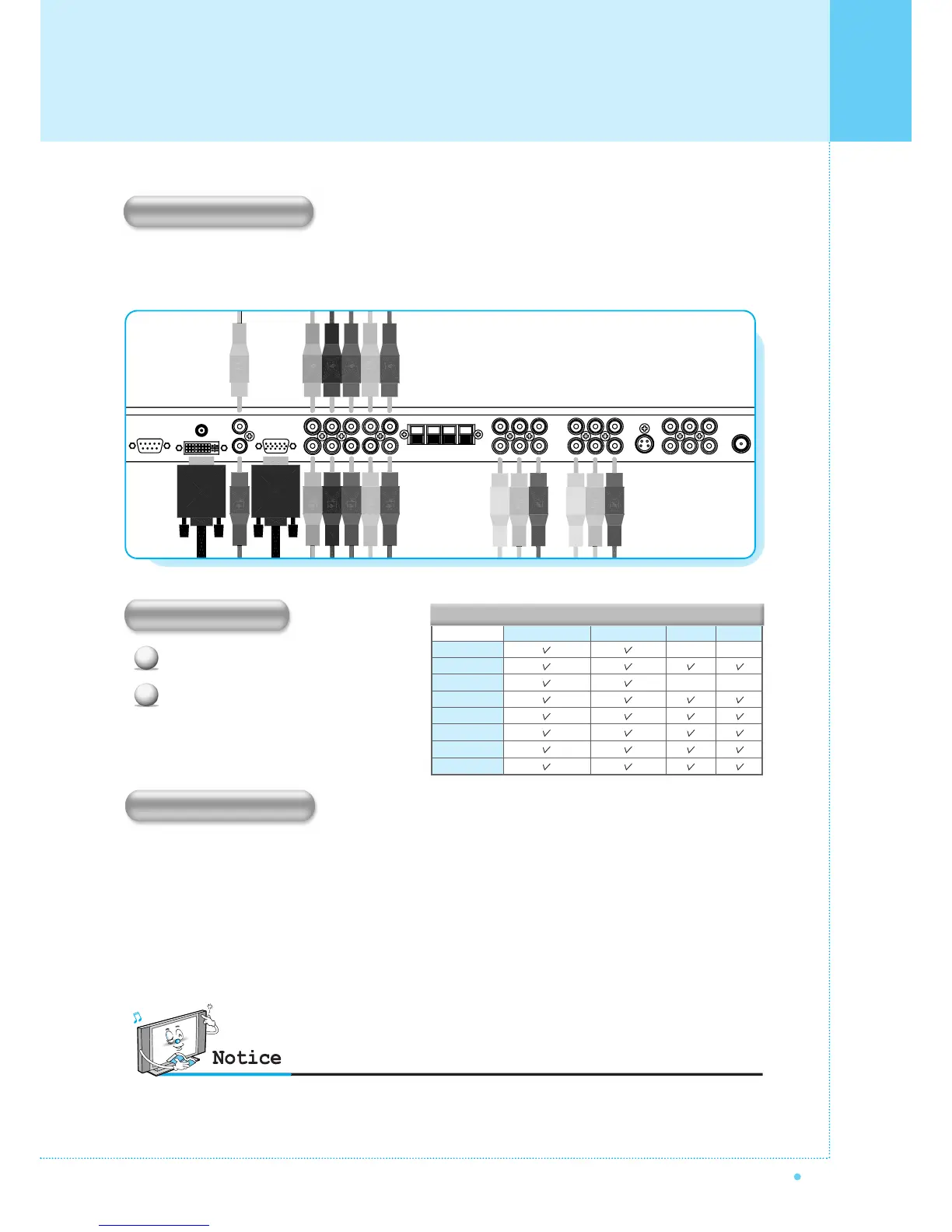 • Component, PC and DVI ports can be displayed only 1 signal among them. If one of them is being displayed, other