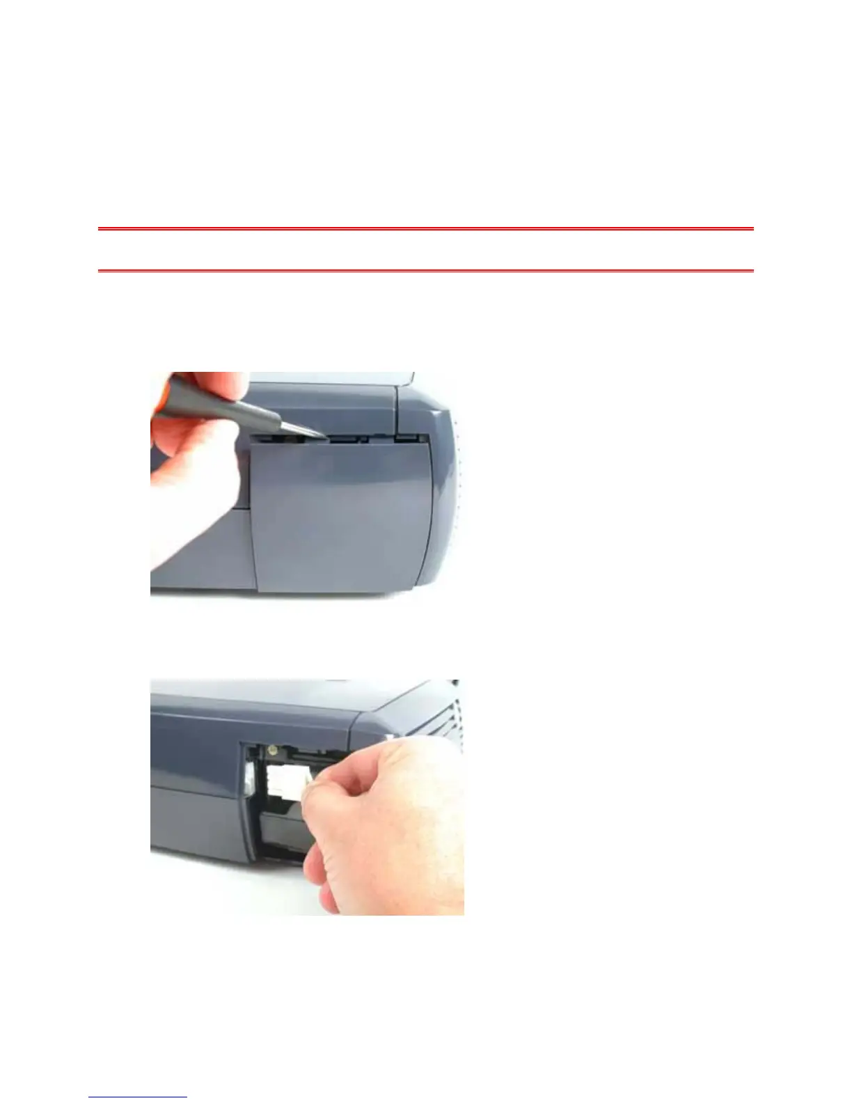 1. To remove the lamp door, insert a small flat-blade screwdriver into one of the recesses at the top