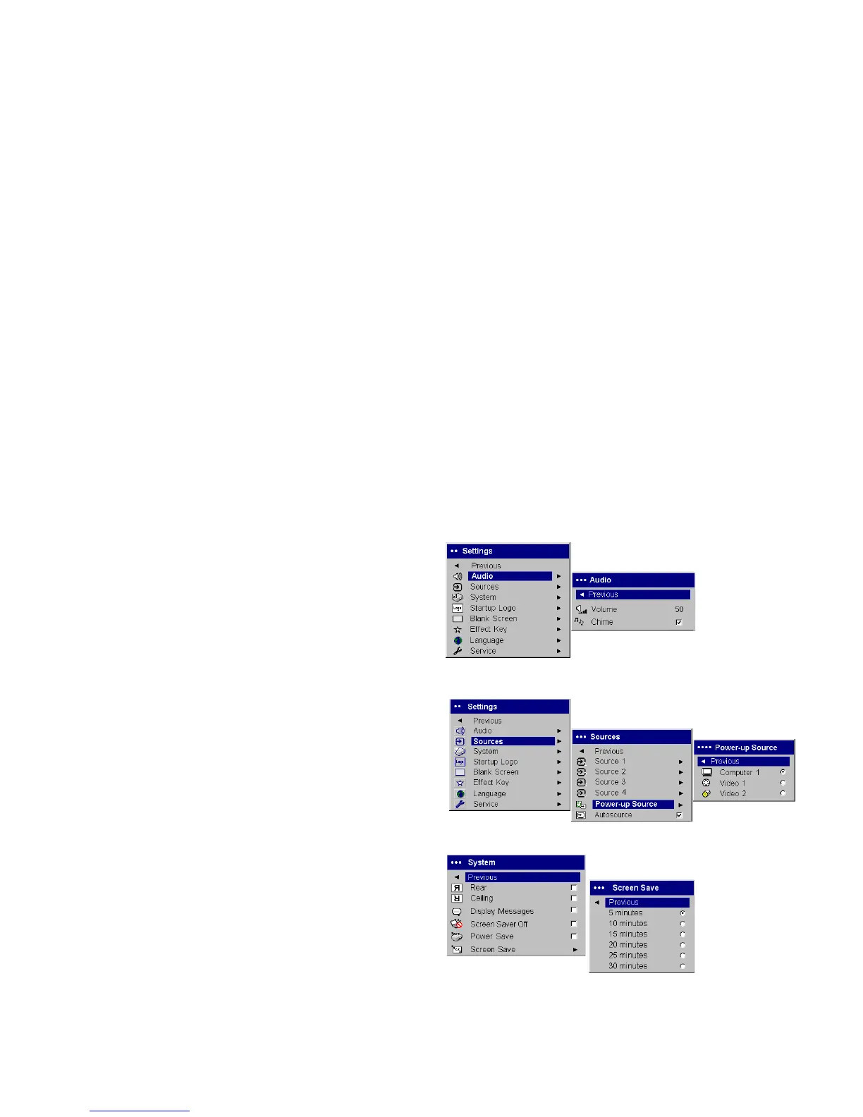 cent screen. Ceiling: turns the image upside down for ceiling-mounted pro-