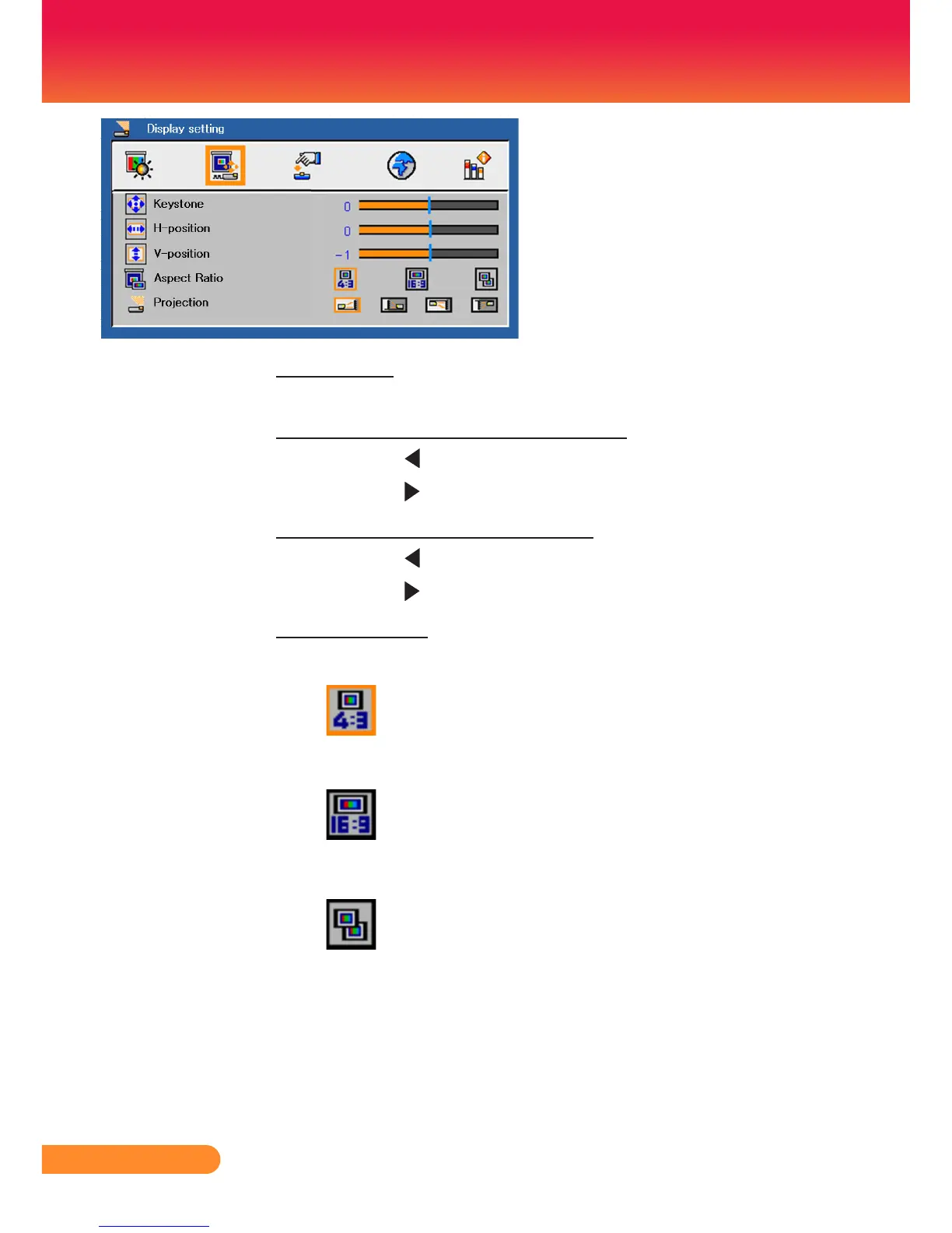 Adjust image distortion caused by tilting projector. (±15 degrees).