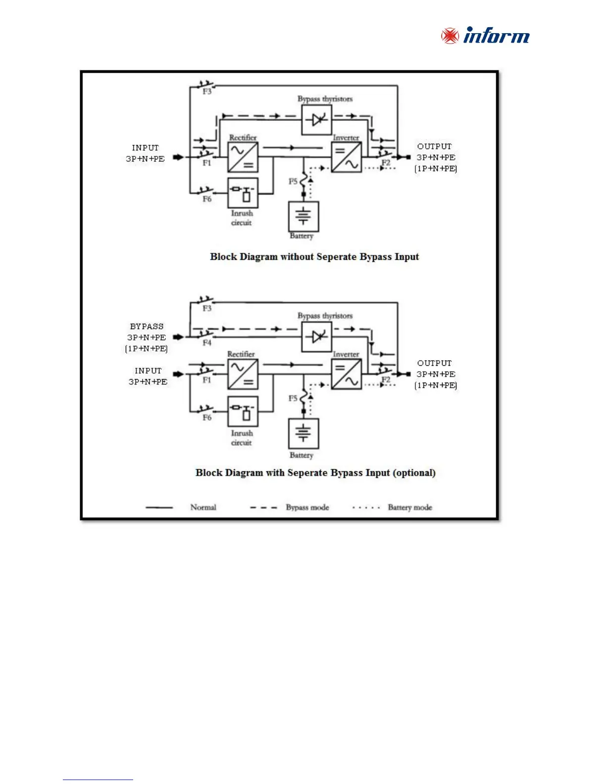 When UPS has no separate bypass mains input, bypass line is also fed from the mains input. Thus, if