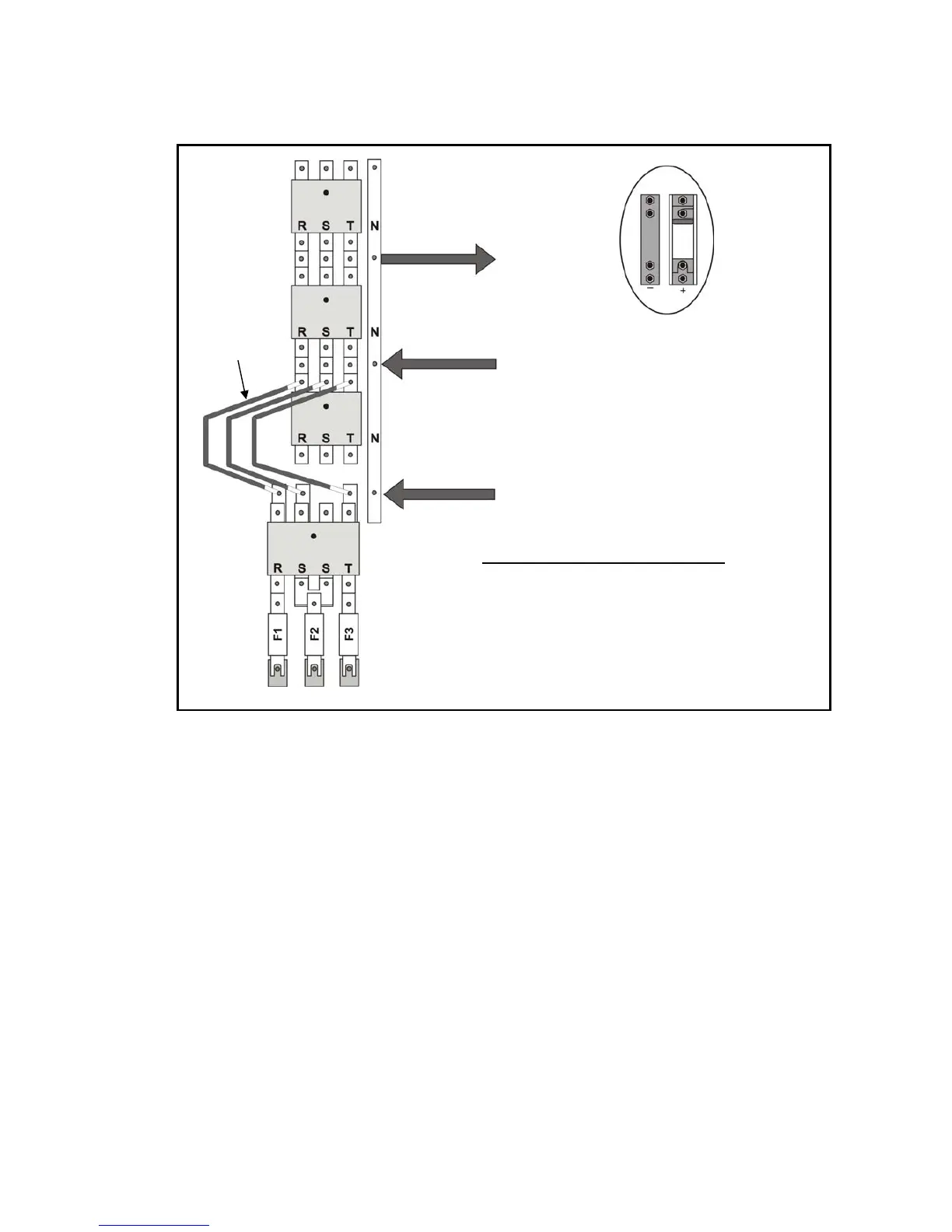 b. Connect the R-S-T-N cables to the B terminals
