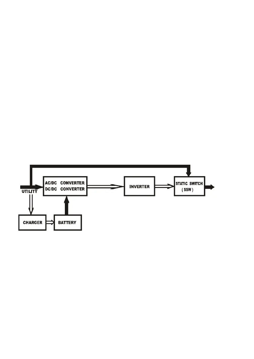 During a blackout, the UPS will work as illustrated in figure 4.2. When Battery is