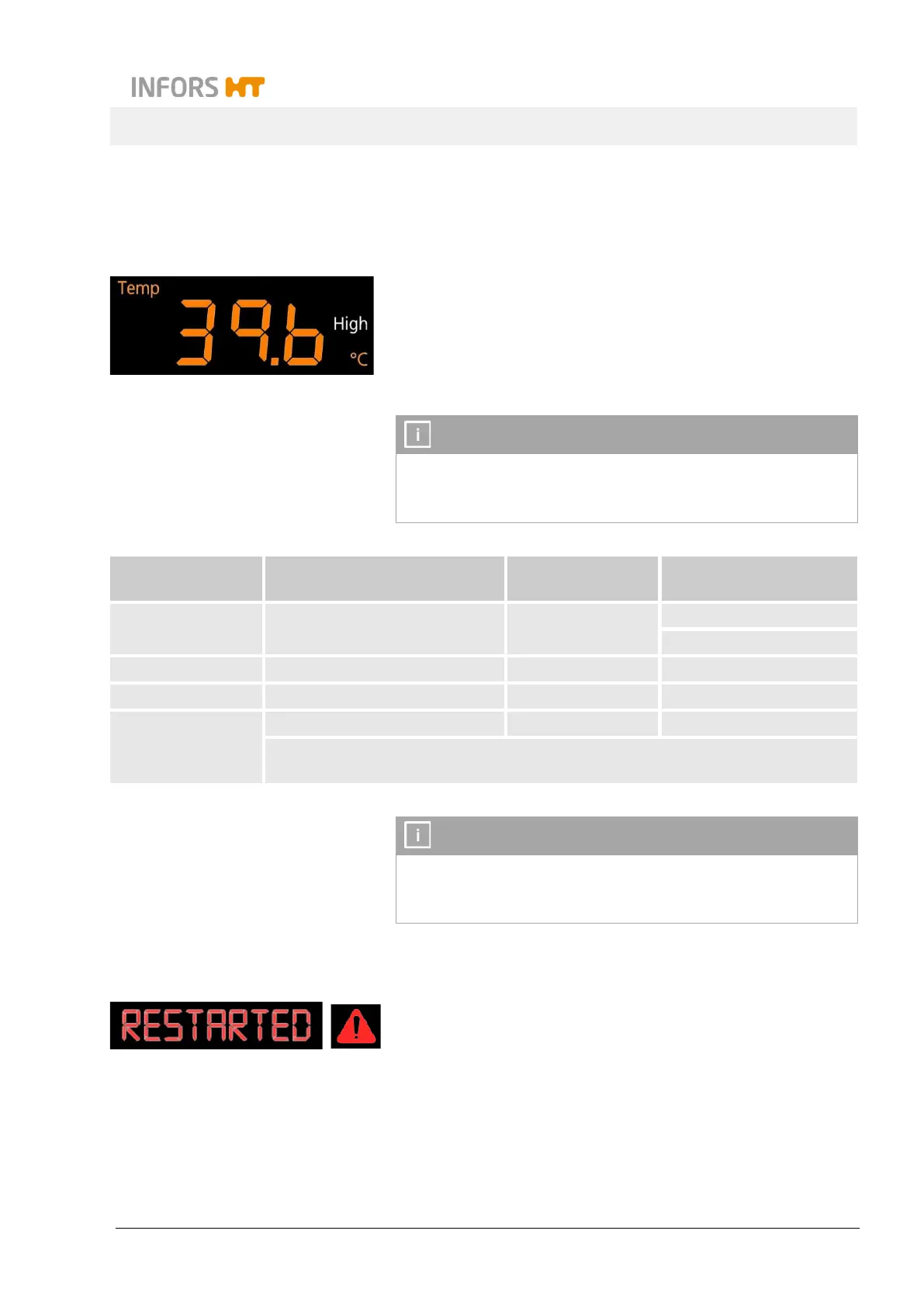 Temperature too high/low > ± 1 °C 20 min (18 °C to 40 °C)