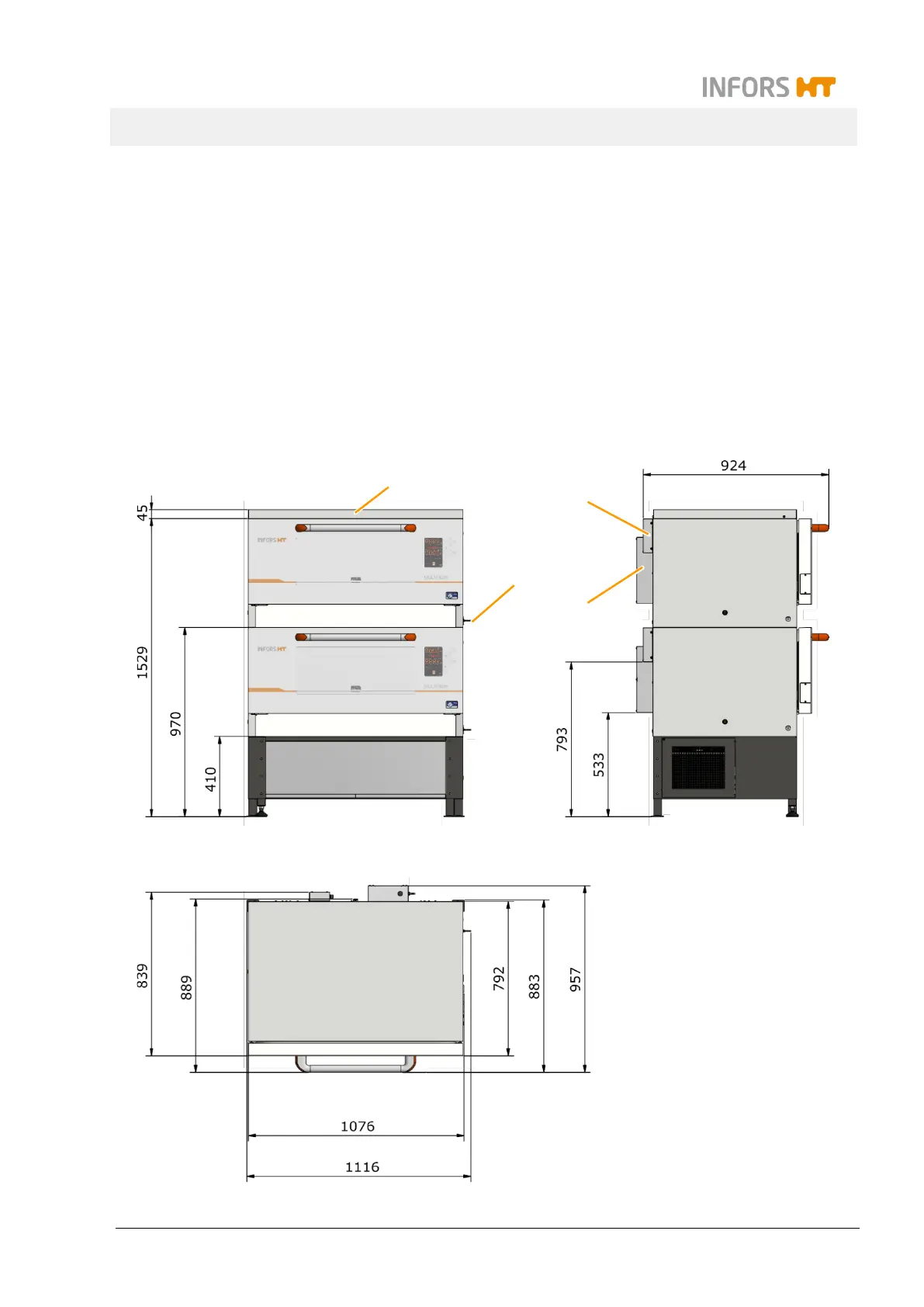 Two units stacked with high base frame and the following options: