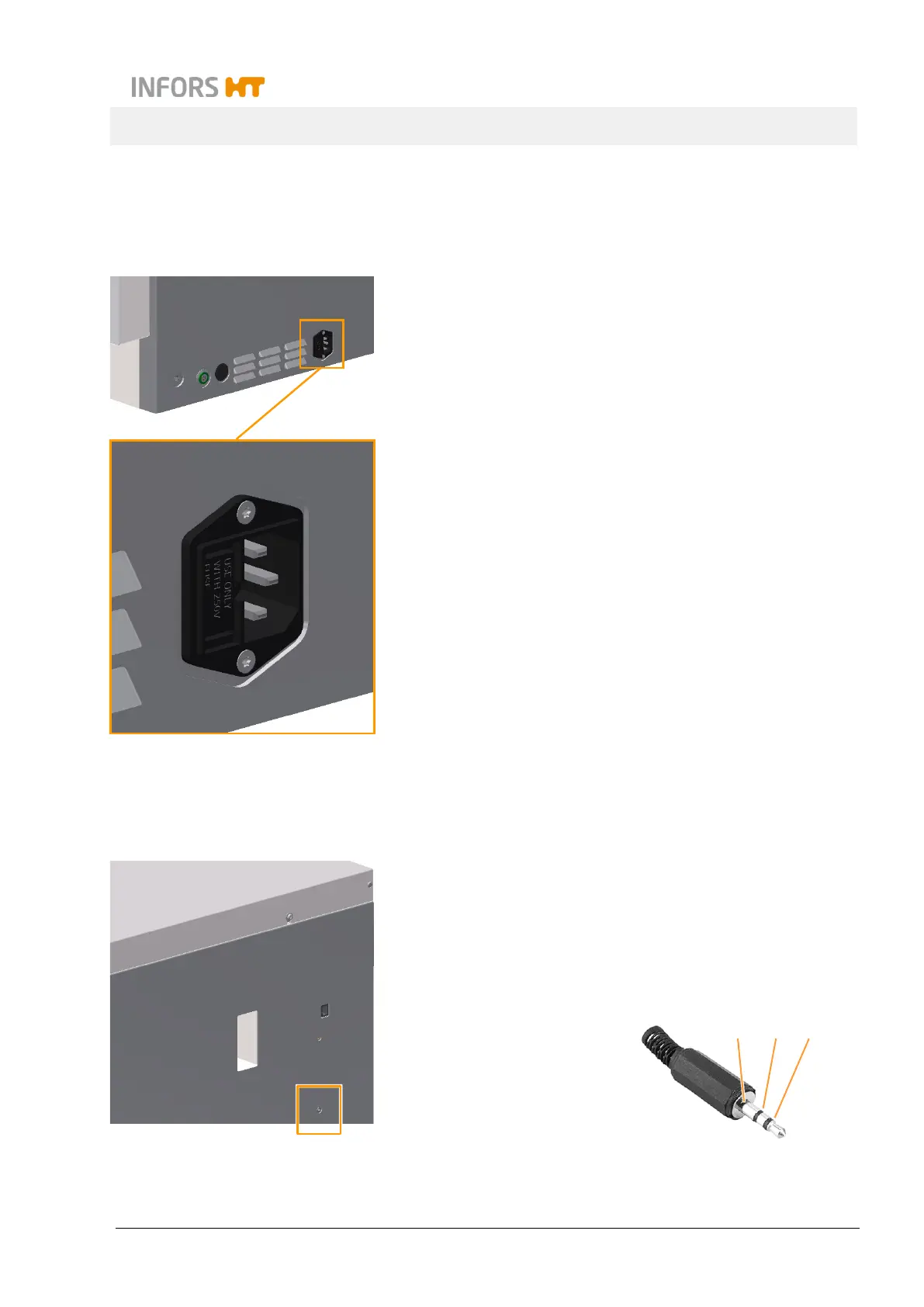 On the right side of the casing there is a socket (stereo jack, 3.5 mm)