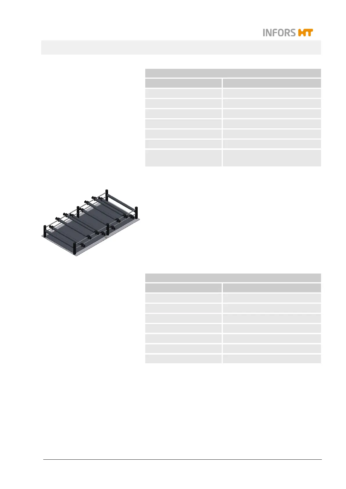 Technical data for the sliding bars