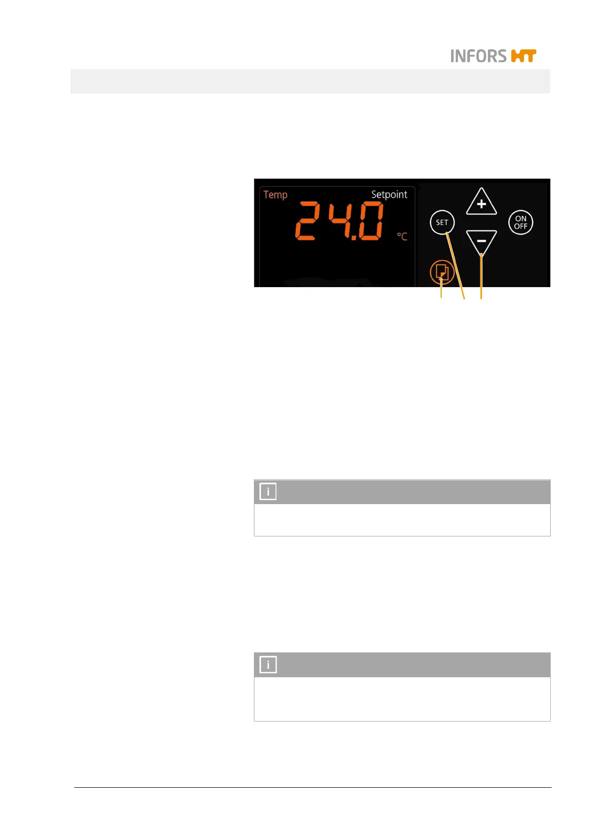3. Use the Plus or Minus key (3) to set the desired setpoint of the