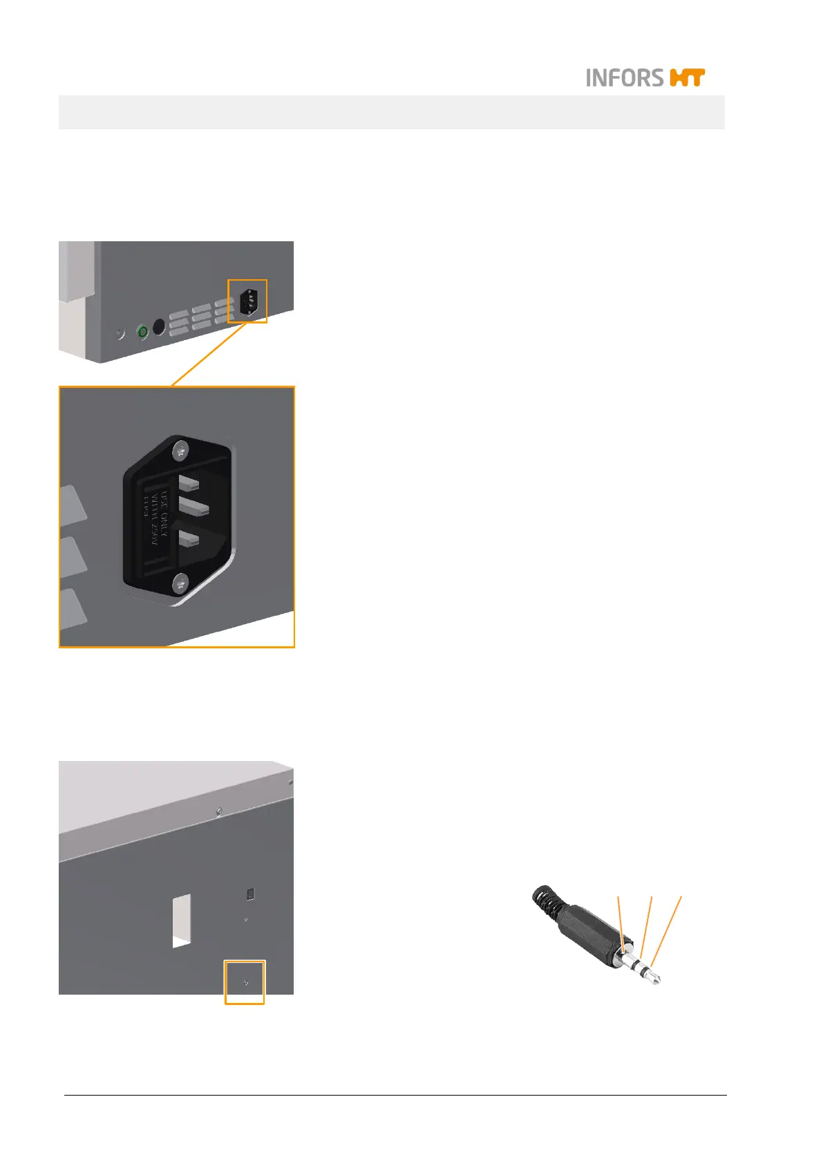 The mains connection is located on the back of the equipment.