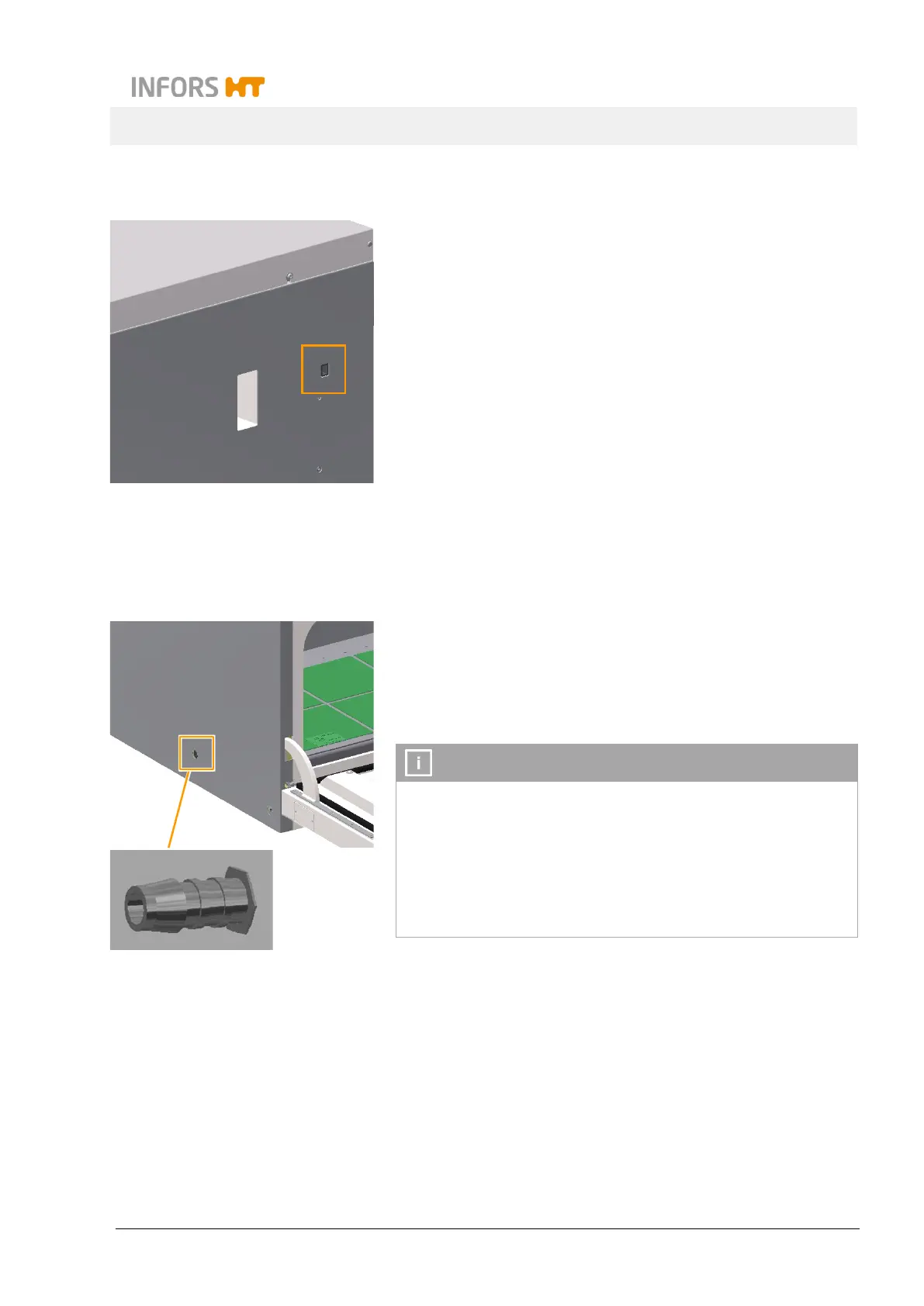 The opening is sealed with a yellow plug. A hose nozzle (¼ inch)