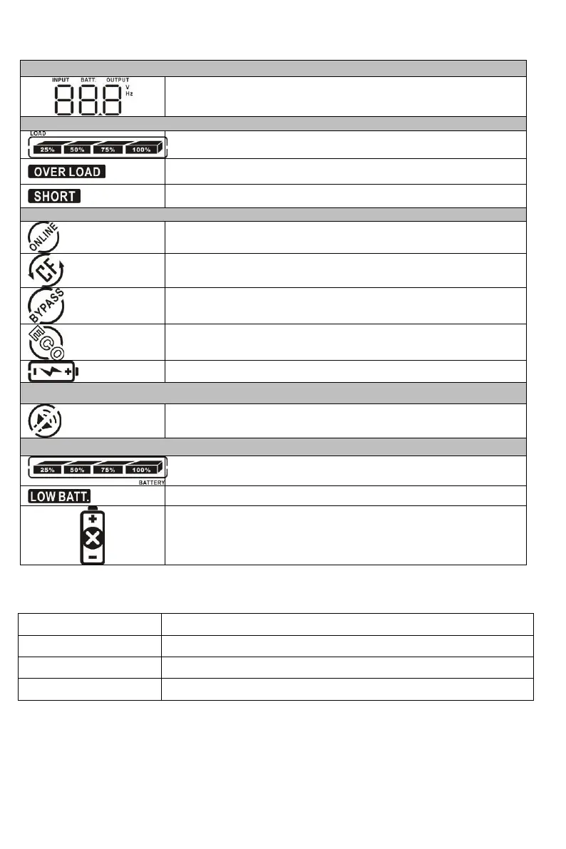 Indique la tension d’entrée/de sortie, la fréquence d’entrée/de sortie