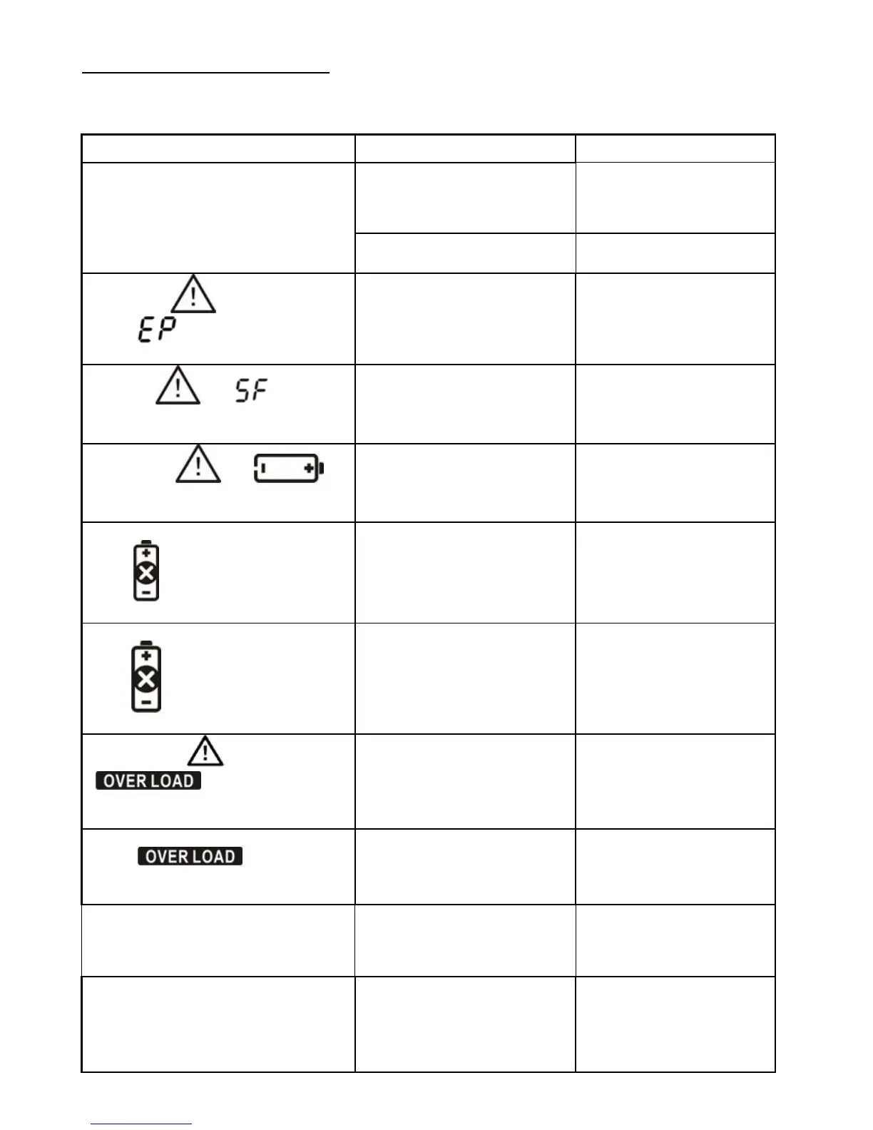 If the UPS system does not operate correctly, please solve the problem by using the table