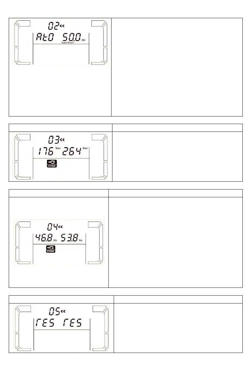 46~54 Hz. If 60Hz selected in parameter 2, UPS