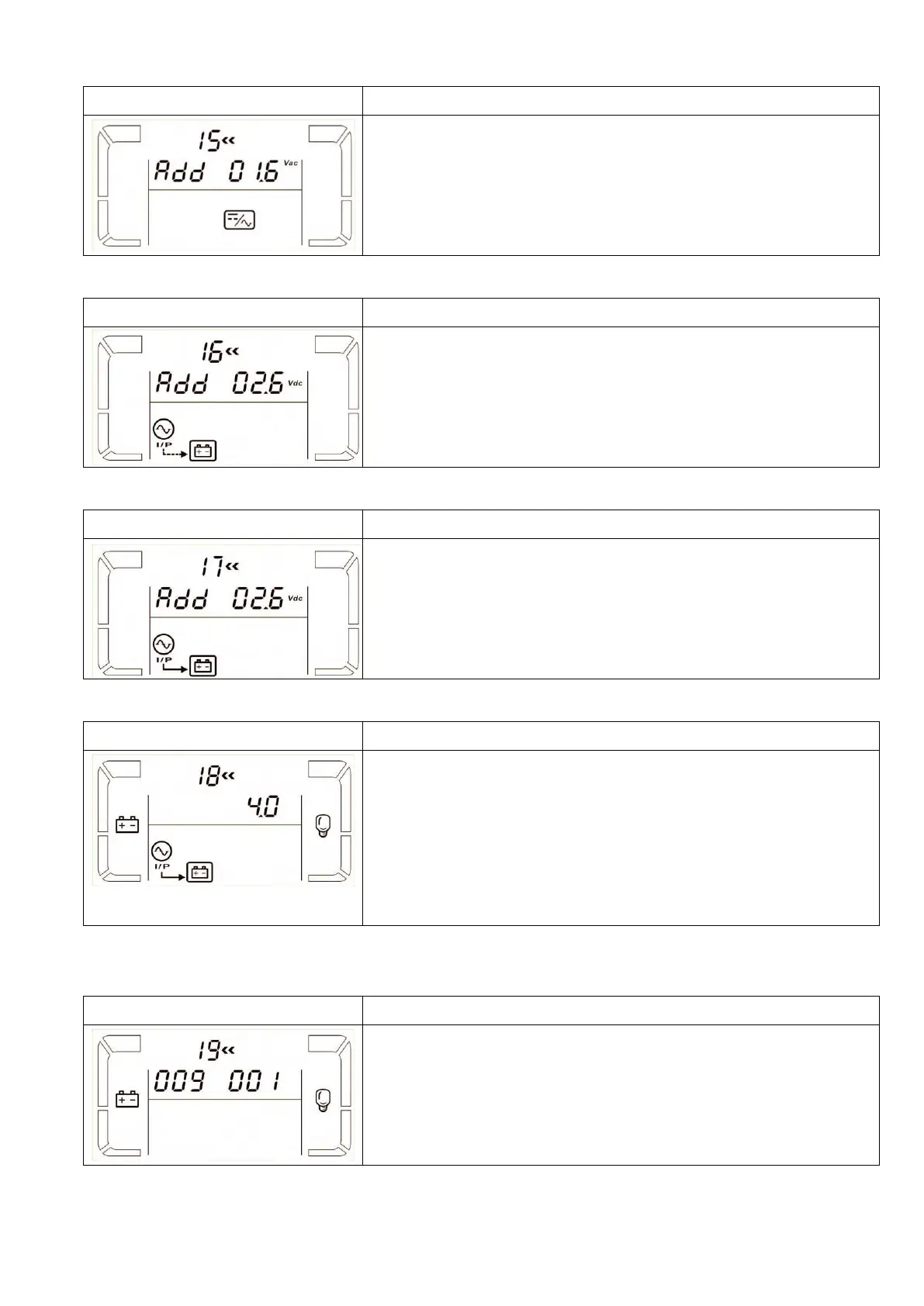 19: Réglage de la capacité des batteries et des groupes parallèles (réglage usine, ne pas