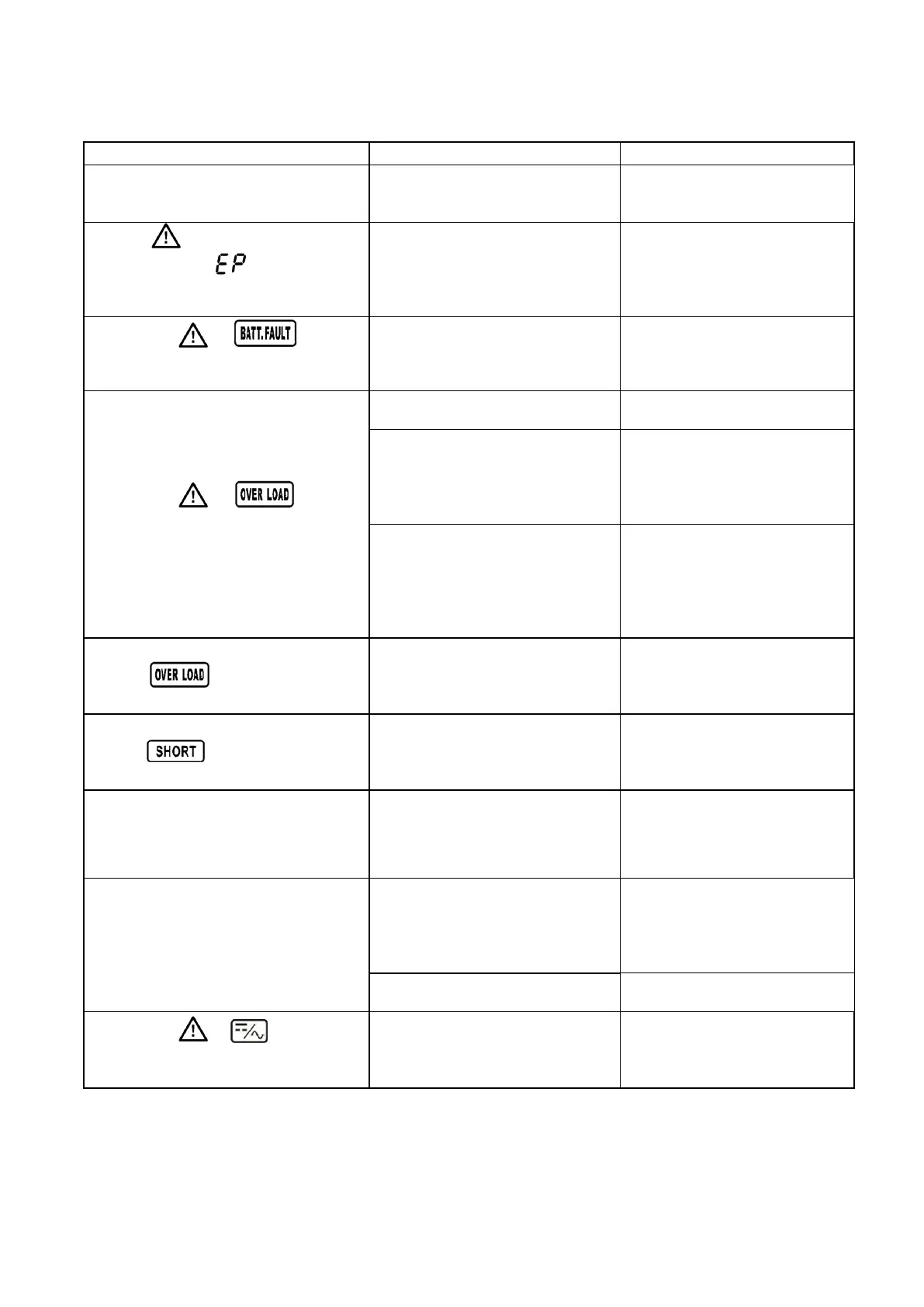 Utiliser le tableau ci-après lorsque l’onduleur ne fonctionne pas correctement.