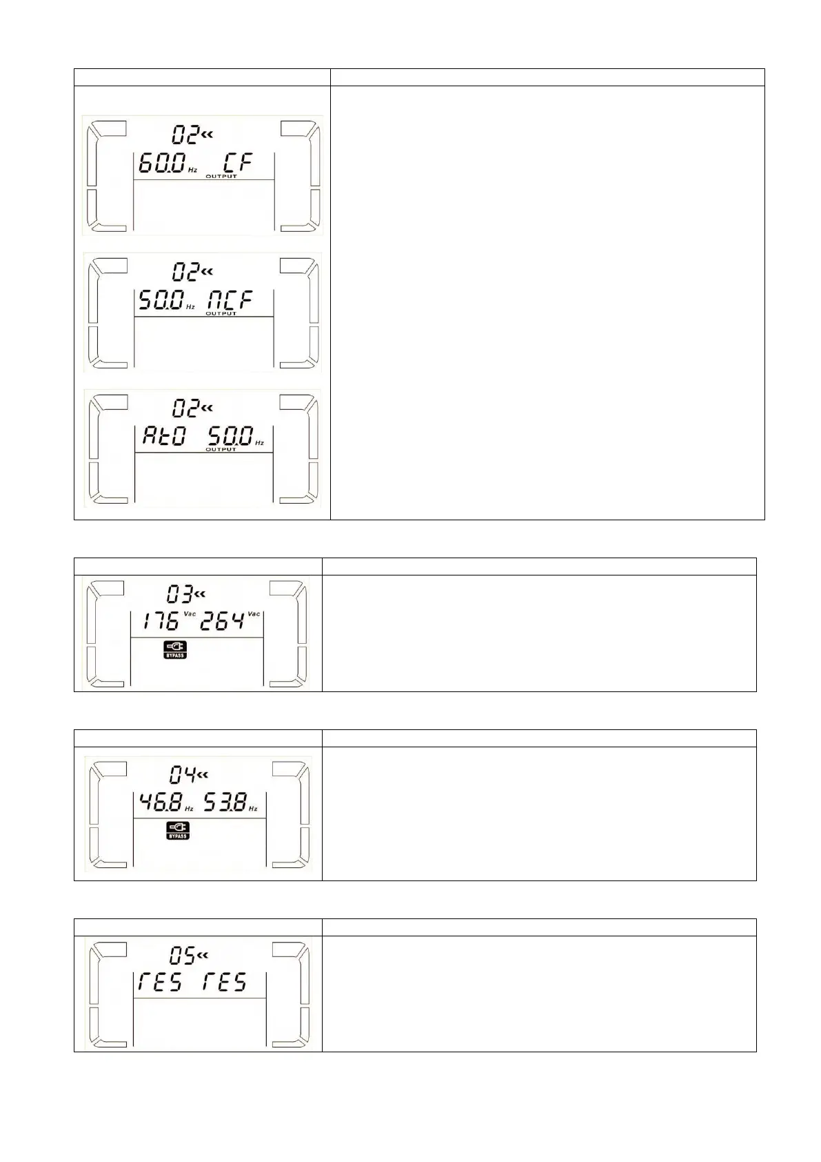 CF: Setting UPS to CVCF mode. If selected, the output frequency