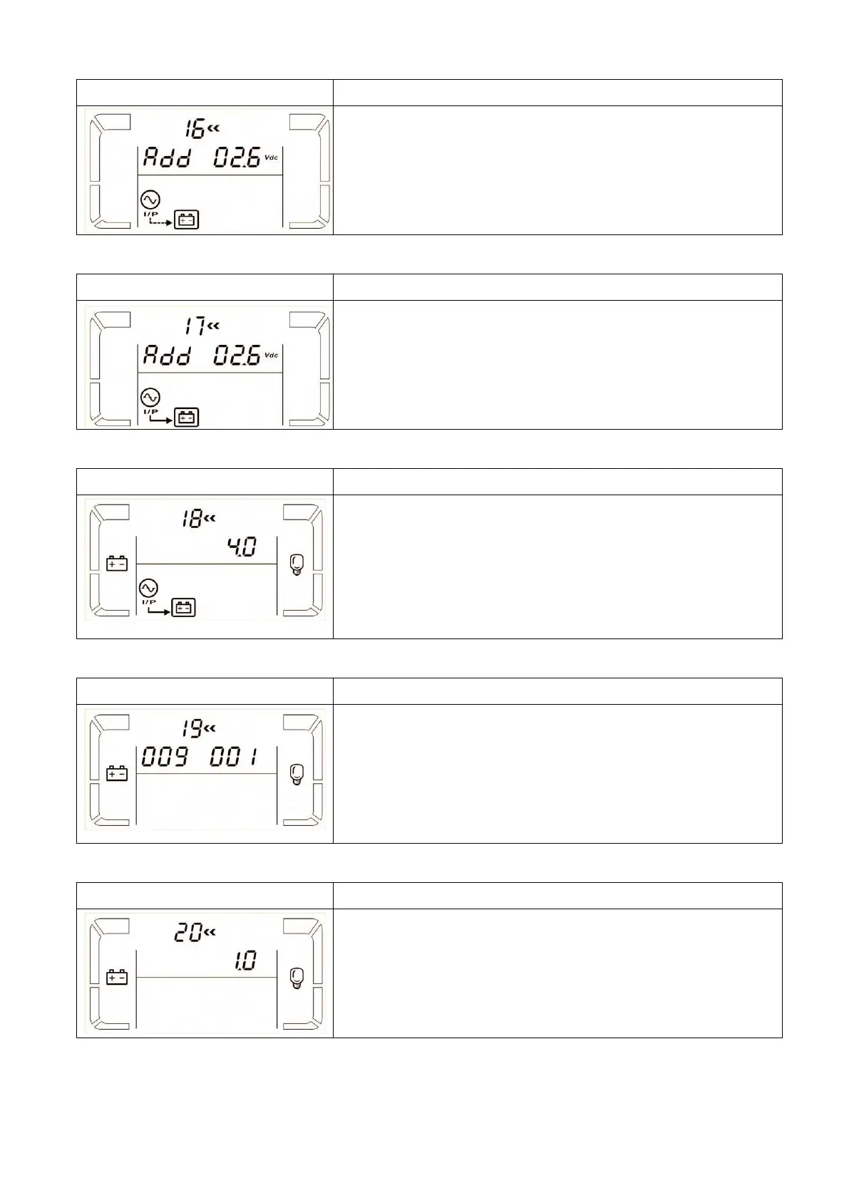 19: Battery capacity and parallel groups setting (factory setting, do not modify)