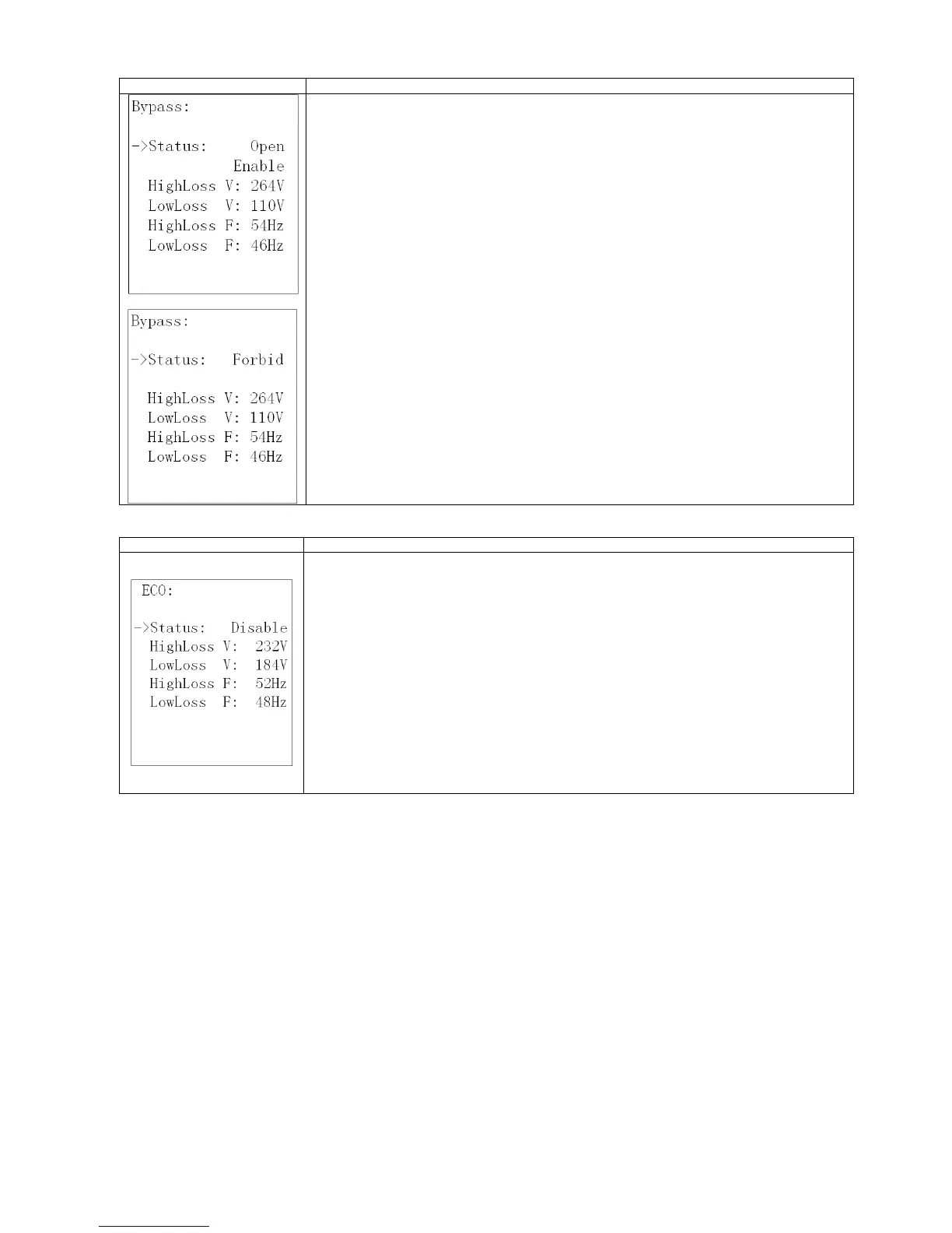 Open: Bypass allowed. When selected, UPS will run at Bypass mode depending on bypass