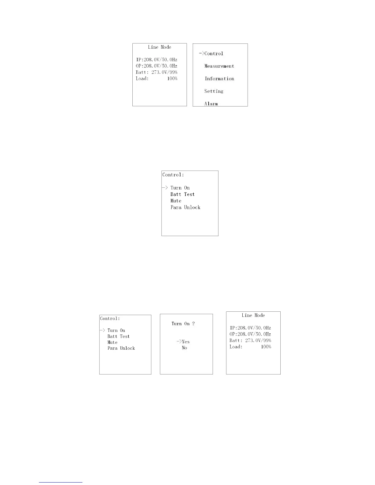 REMARQUE 2 : Le message « Turn On » [Allumer] s'affichera si l’onduleur n'est pas allumé. Le message « Turn Off »