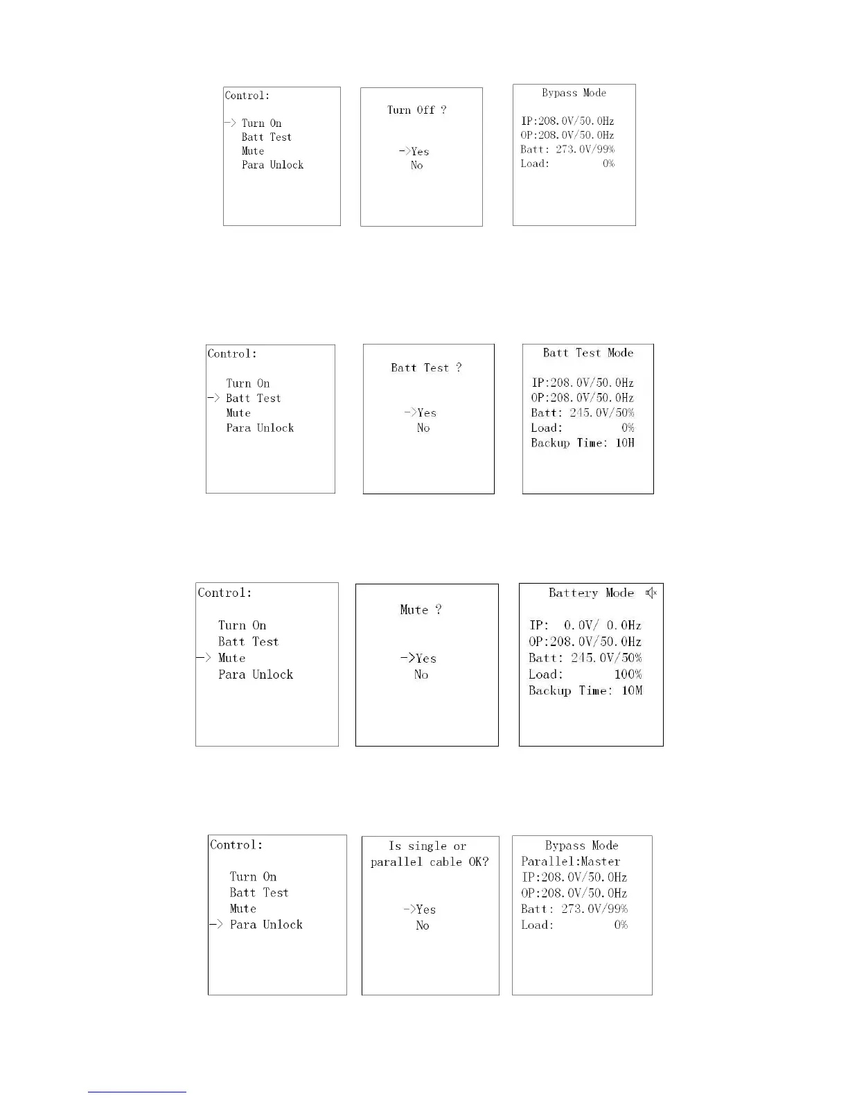 contrôle. Si cette option est sélectionnée et confirmée, l'onduleur passera en mode dérivation ou s'éteindra.