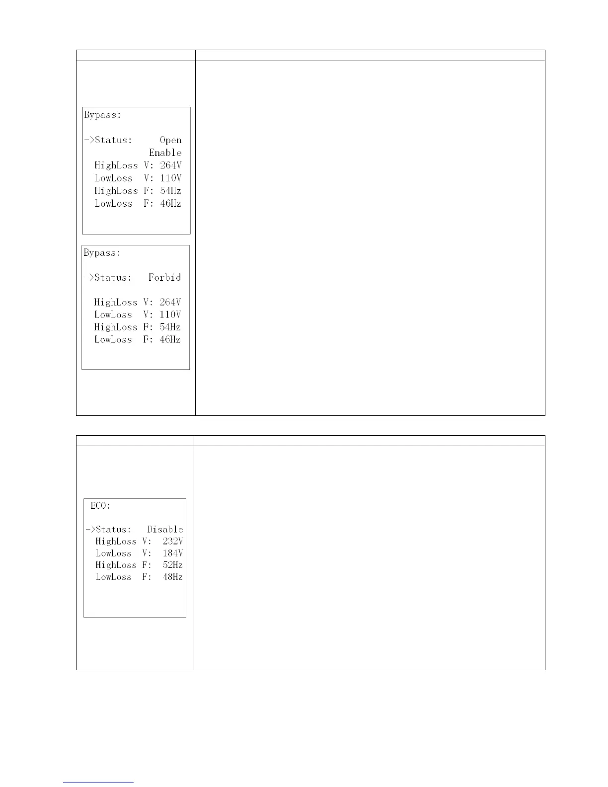 Open [Ouvrir] : Dérivation autorisée. En sélectionnant cette option, l’onduleur