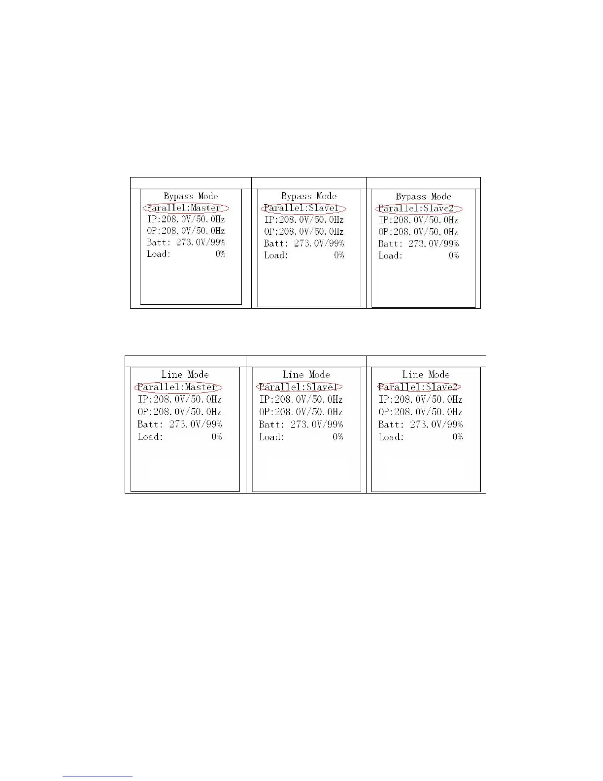 images ci-dessous. Si les systèmes onduleurs en parallèle sont bien configurés, l'information suivante s'affichera :